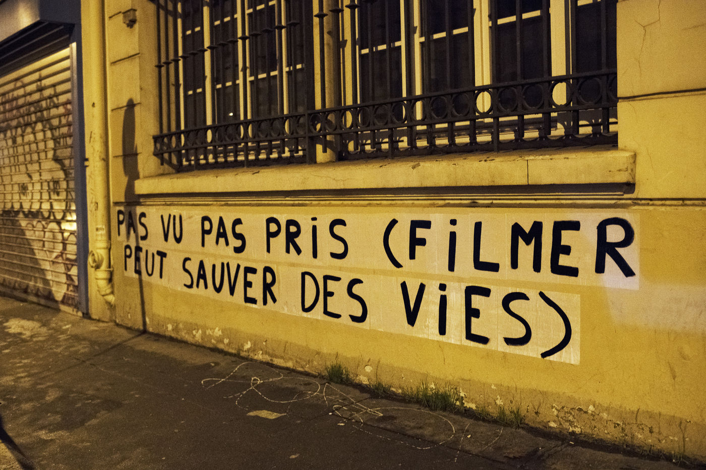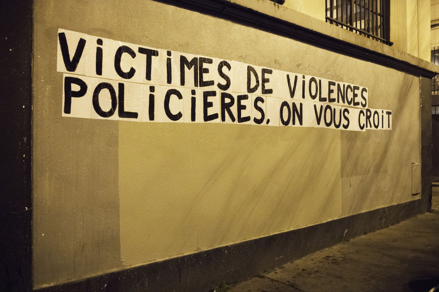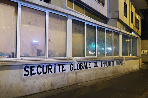 On December 19th, members of the Collages Féminicides Paris collective posted messages on the walls of the 11th arrondissement about the "global security" law and police violence.