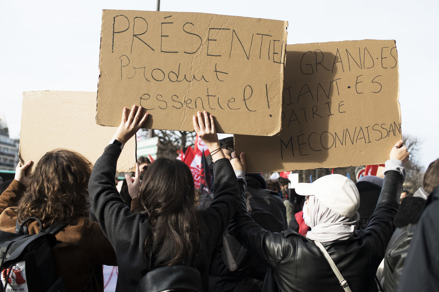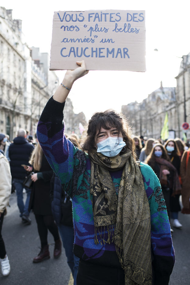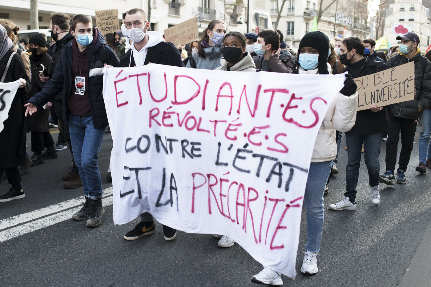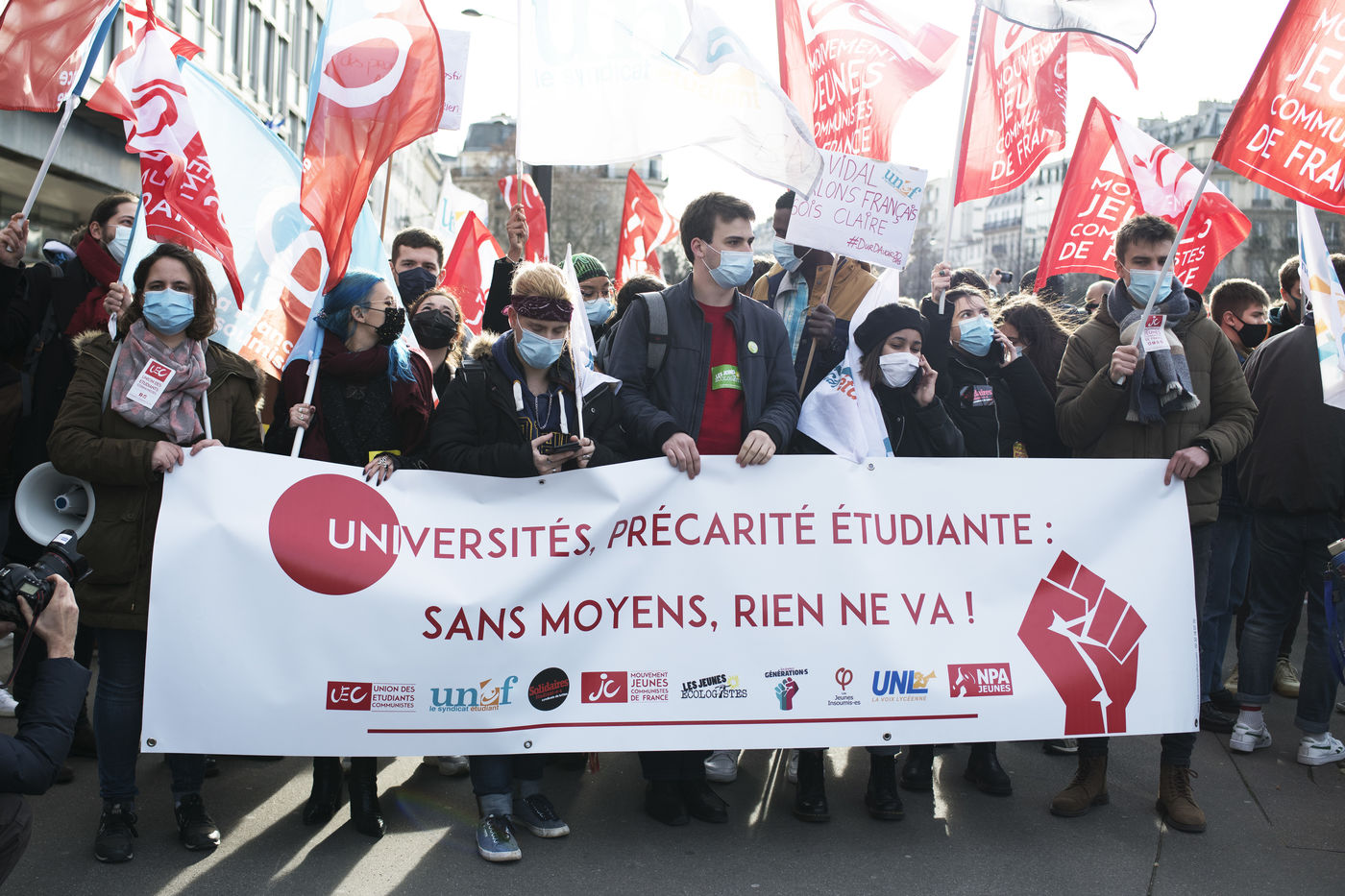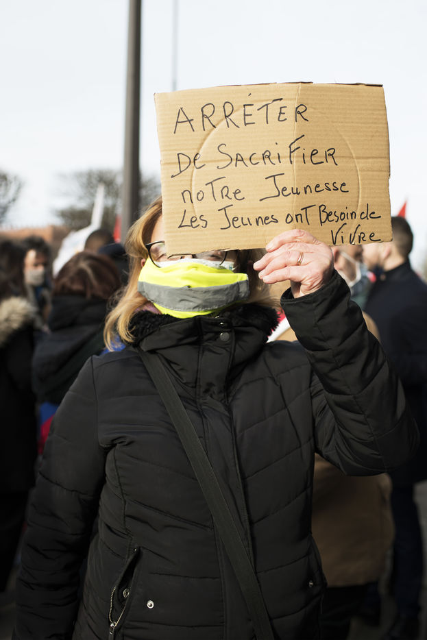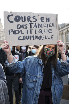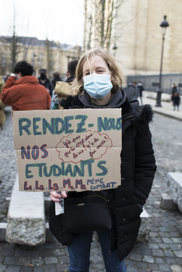 Le mercredi 20 janvier 2021 avait lieu une manifestation des étudiants au départ du CROUS de Paris et allant en direction du Ministère de l'enseignement supérieur pour dénoncer les conditions d'études sous les restrictions induites par le covid entrainant un décrochage scolaire pour de nombreux d'entre-eux et appelant à la réouverture des universités.