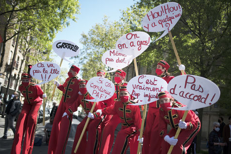 Demonstration against the reform of unemployment insurance and job cuts between Place d'Italie and Bastille, Friday, April 23, 2021 in Paris.