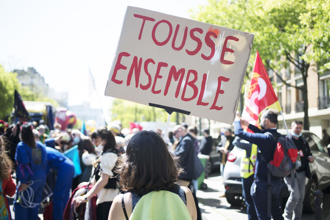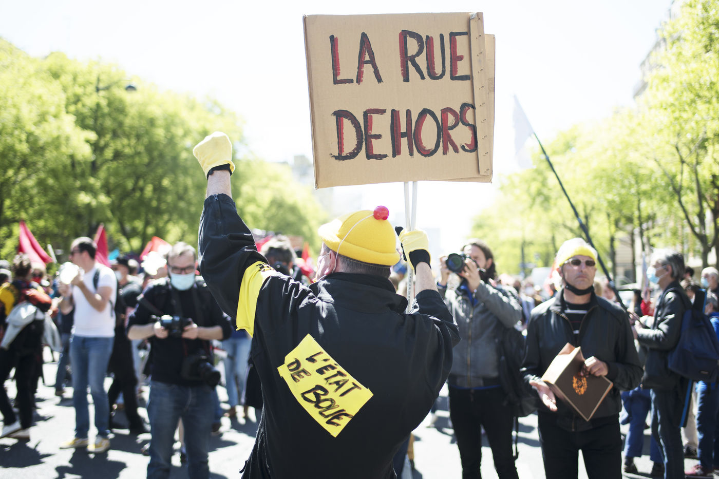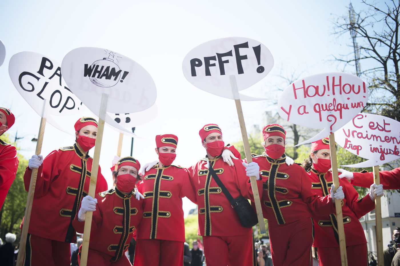 Manifestation contre la réforme de l'assurance chômage et les suppressions d'emplois entre place d'Italie et Bastille, le vendredi 23 avril 2021 à Paris.