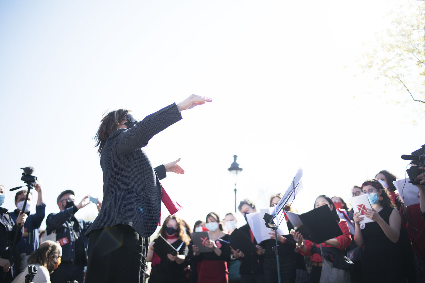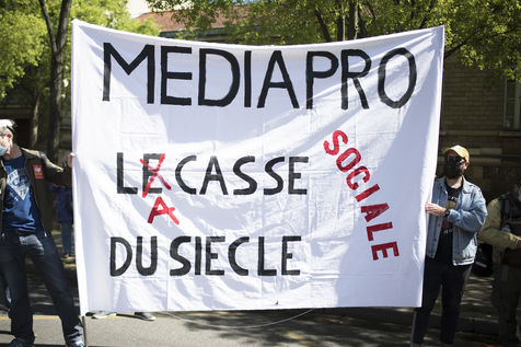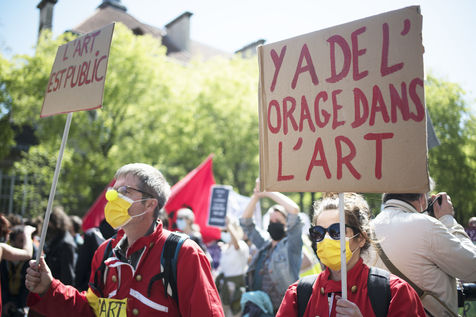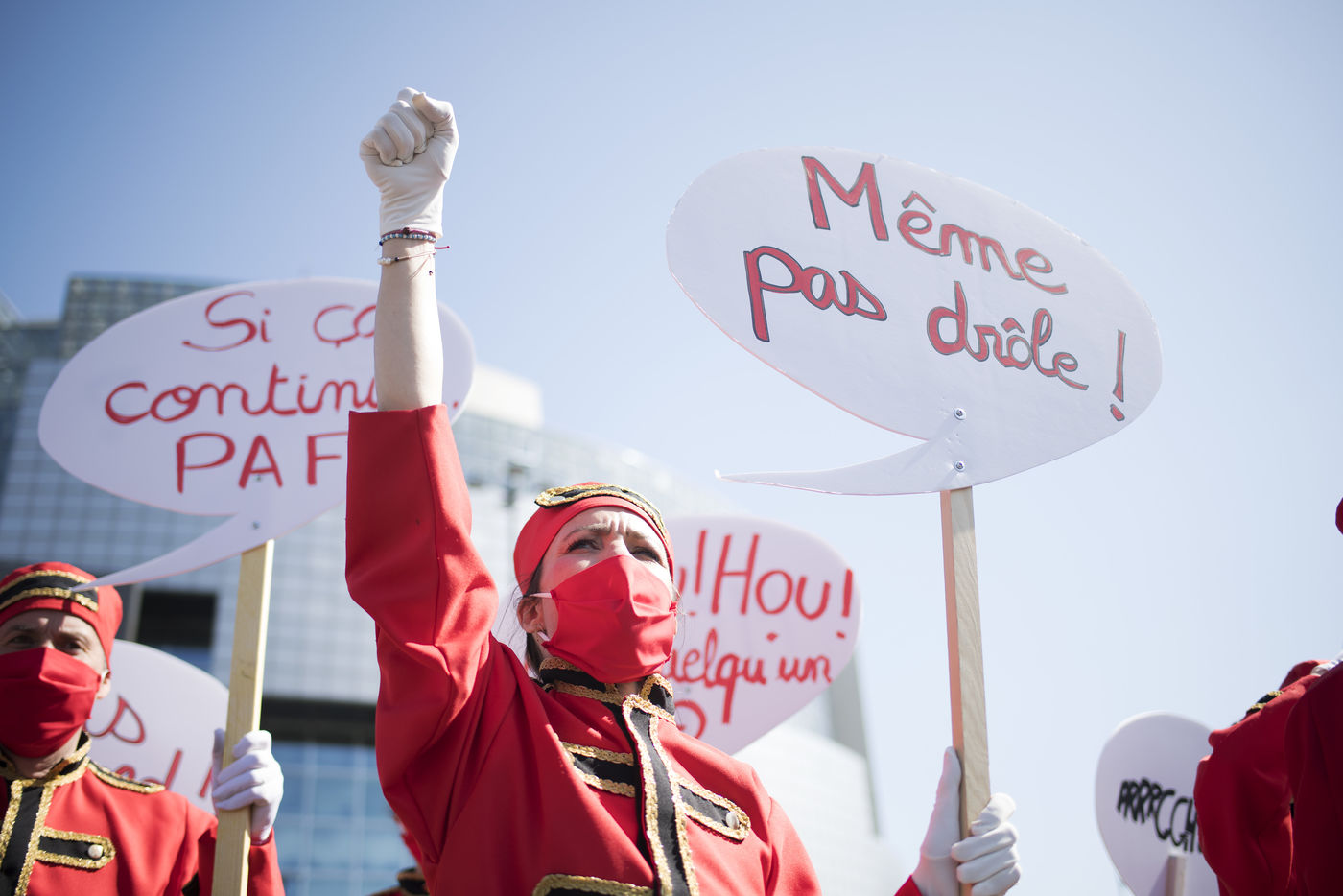 Manifestation contre la réforme de l'assurance chômage et les suppressions d'emplois entre place d'Italie et Bastille, le vendredi 23 avril 2021 à Paris.