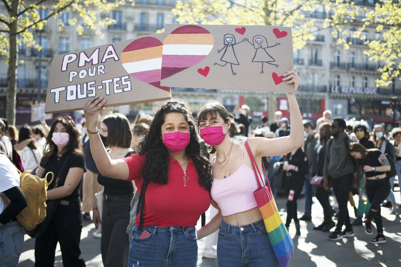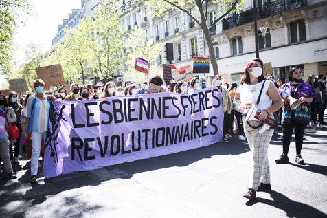 Lesbian march or "dyke march" organized in Paris, April 25, 2021. The demonstration asked in particular the PMA for all, more visibility for the lesbian community and denounced the LQBTQ+phobias.