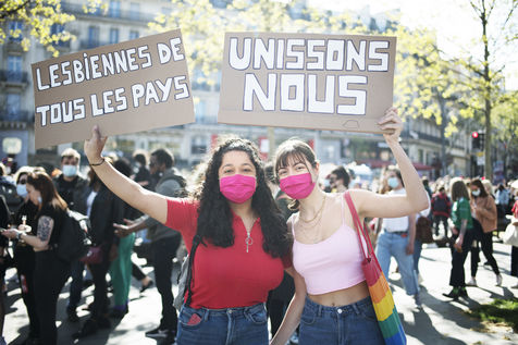 Une marche lesbienne ou "dyke march" était organisée à Paris ce dimanche 25 avril 2021. La manifestation demandait notamment la PMA pour tous.te.s, plus de visibilité pour la communauté lesbienne et dénonçait les LQBTQ+phobies.