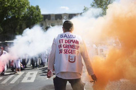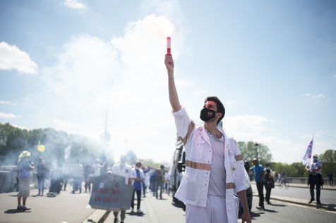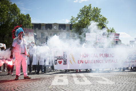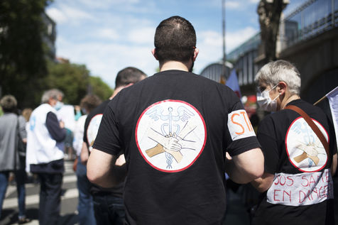Demonstration of health care workers on 29 May 2021 in Paris between Saint-Marcel and Bastille to demand more resources for public hospitals and universal access to care and medicines.