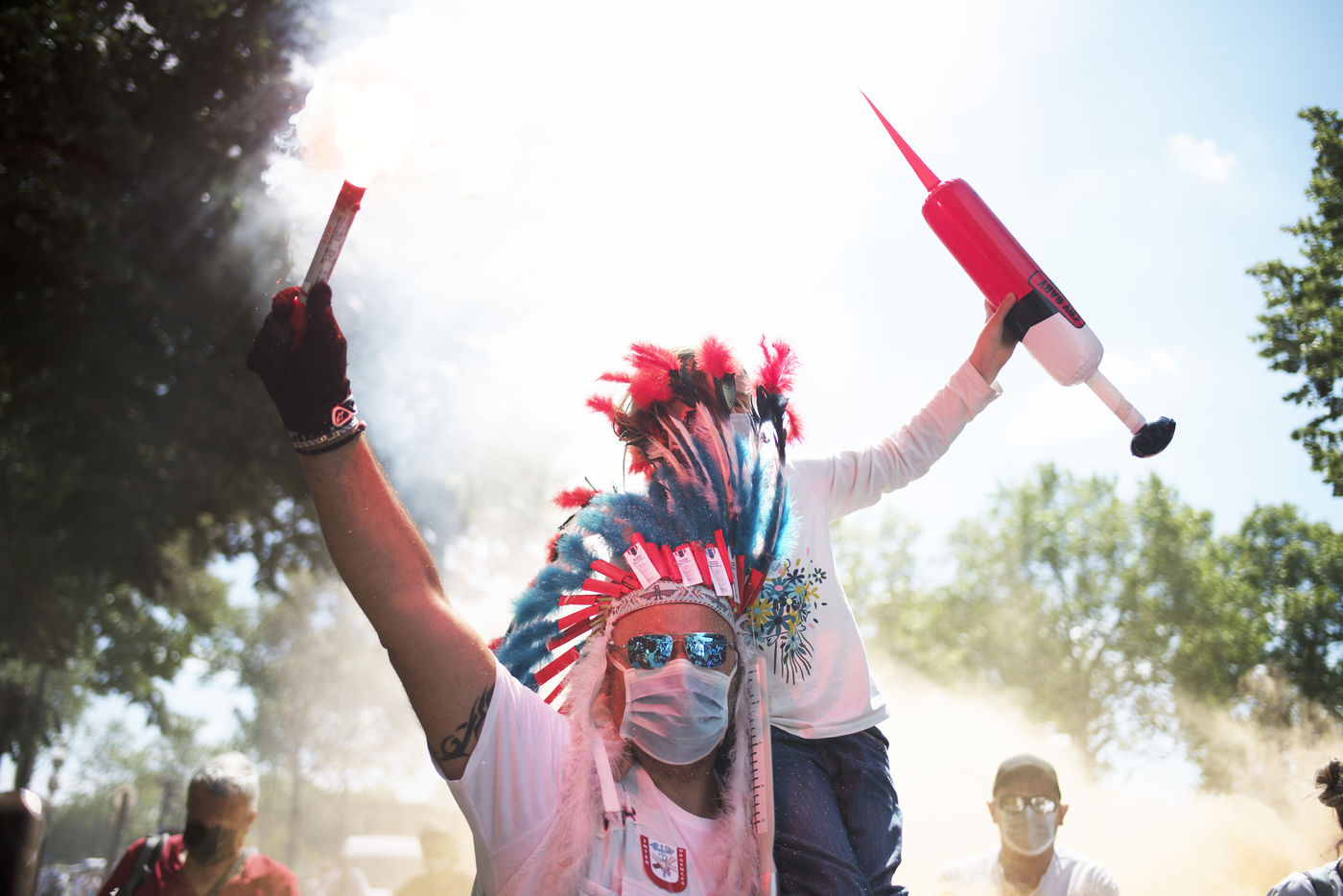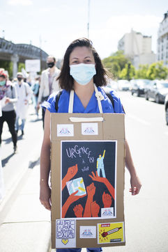 Manifestation des soignants le 29 mai 2021 a Paris entre Saint-Marcel et Bastille pour demander plus de moyens pour l'hôpital public et l'universalité d'accès aux soins et médicaments.