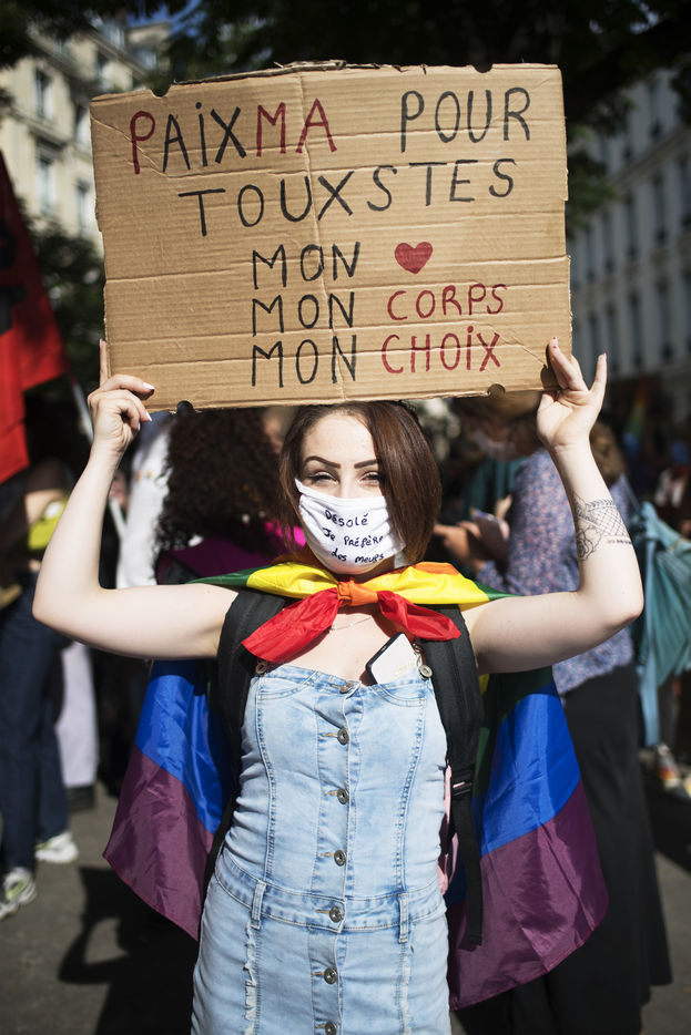 Gathering to demand PMA for everyone, including transgender people, near the National Assembly, June 9, 2021 in Paris.