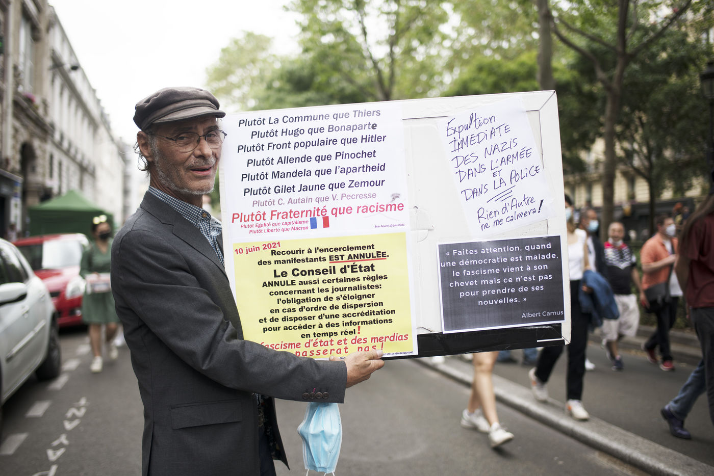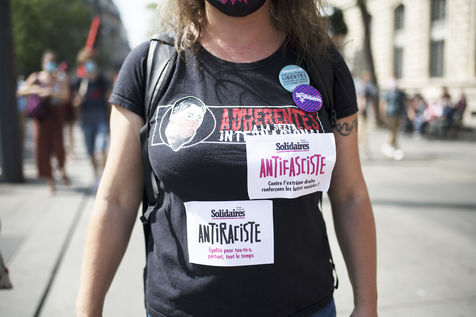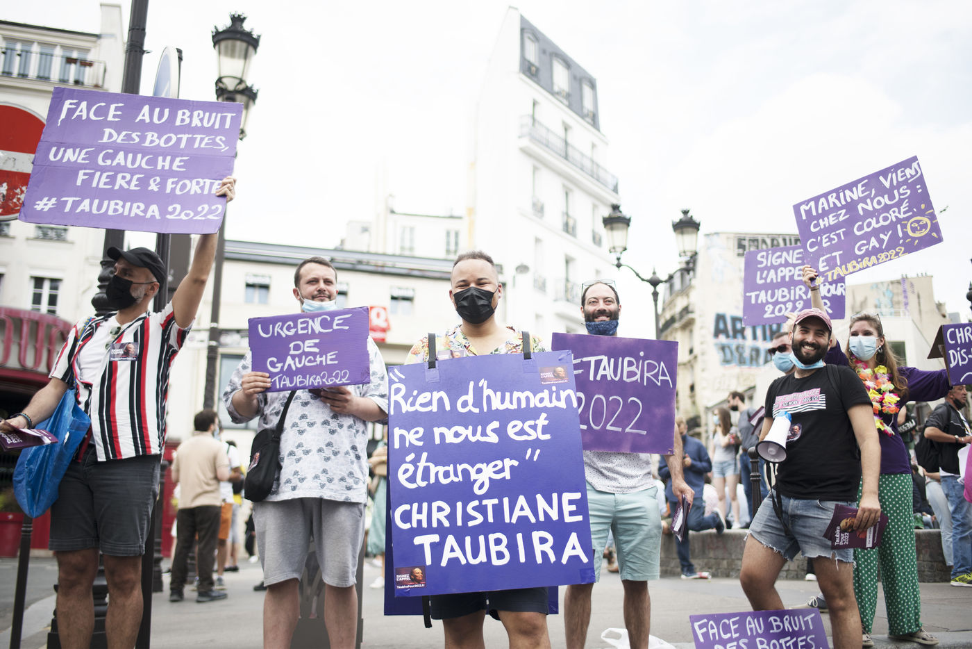 Manifestation pour les libertés et contre les idées d'extrême droite, en particulier contre le racisme, le sexisme, l'insécurité sociale et pour une égalité des droits. La manifestation a pris place le samedi 12 juin 2021 à Paris entre place de Clichy et République.