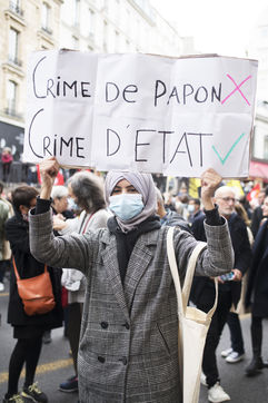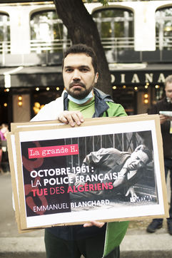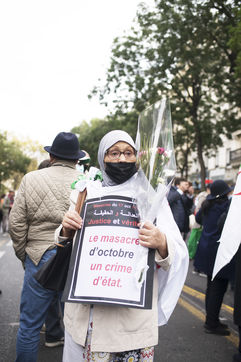 Demonstration commemorating the 60th anniversary of October 17, 1961 in Paris, between the Grand Rex and the Pont Saint-Michel. On October 17, 1961, the French police killed Algerian women, men and children who had come to demonstrate against colonialism. This state crime without memory left between 100 and several hundred people dead.