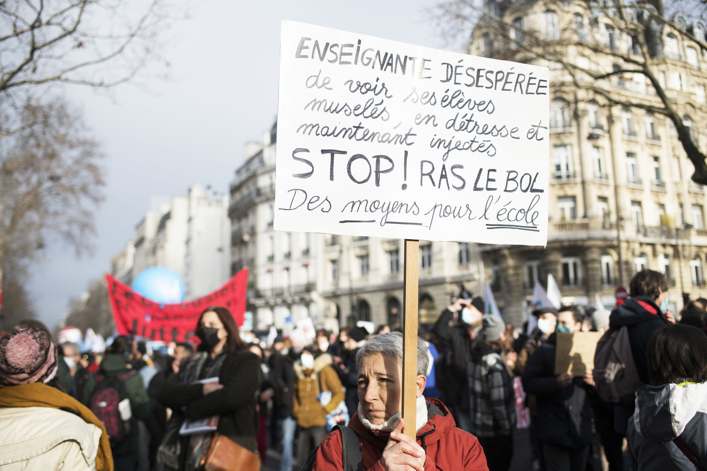 This Thursday, January 13, 2022, the entire educational community was called to mobilize to demand a coherent policy of prevention and protection that is equal to the school, health and social issues. The demonstration started from the Place Edmond Rostand, the demonstrators were blocked by the police on Boulevard Raspail and could not go to the Ministry of Education as planned.