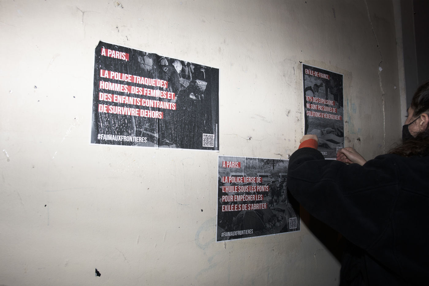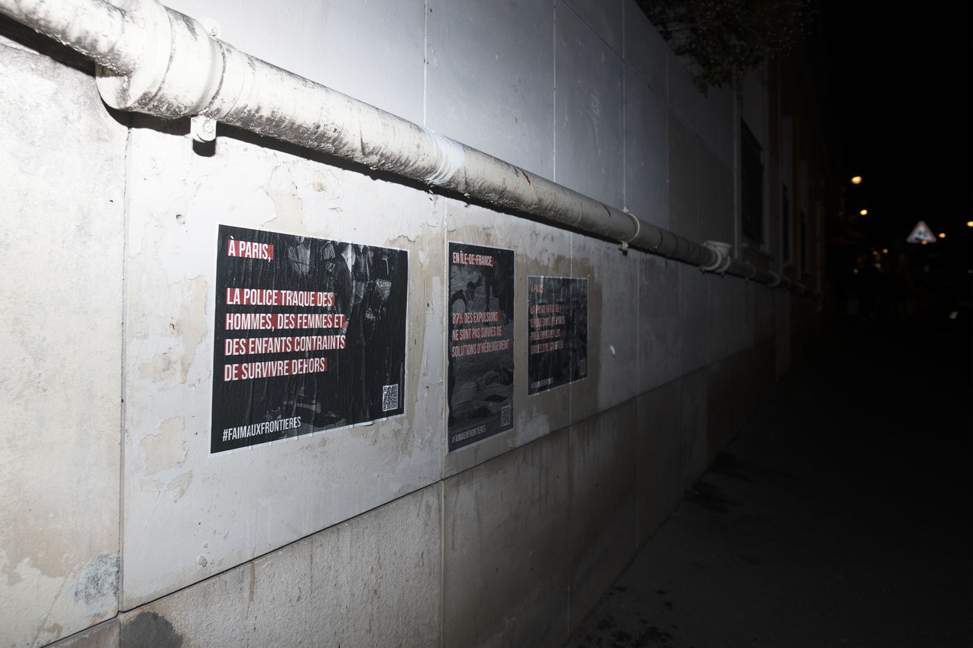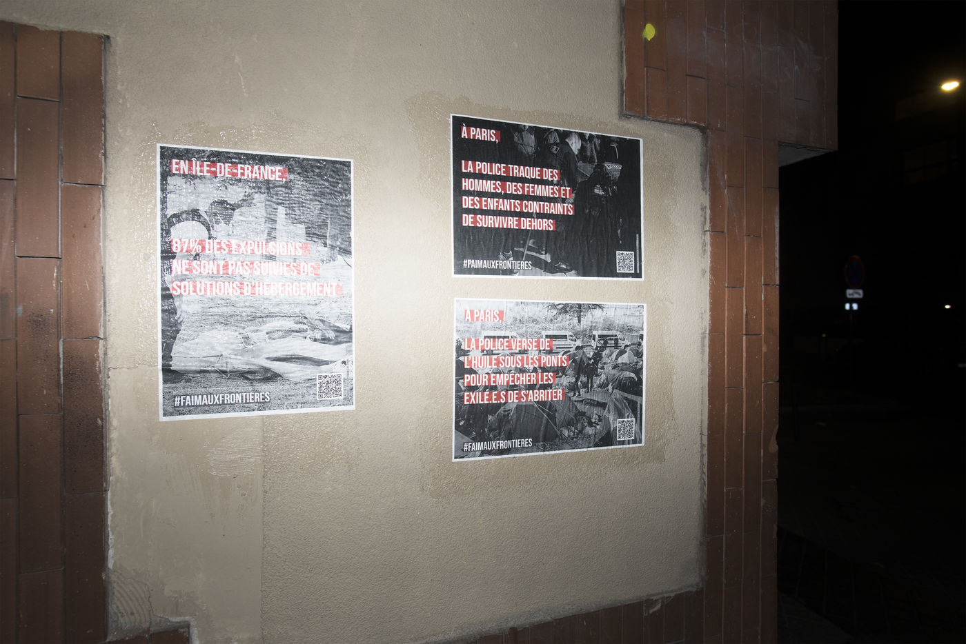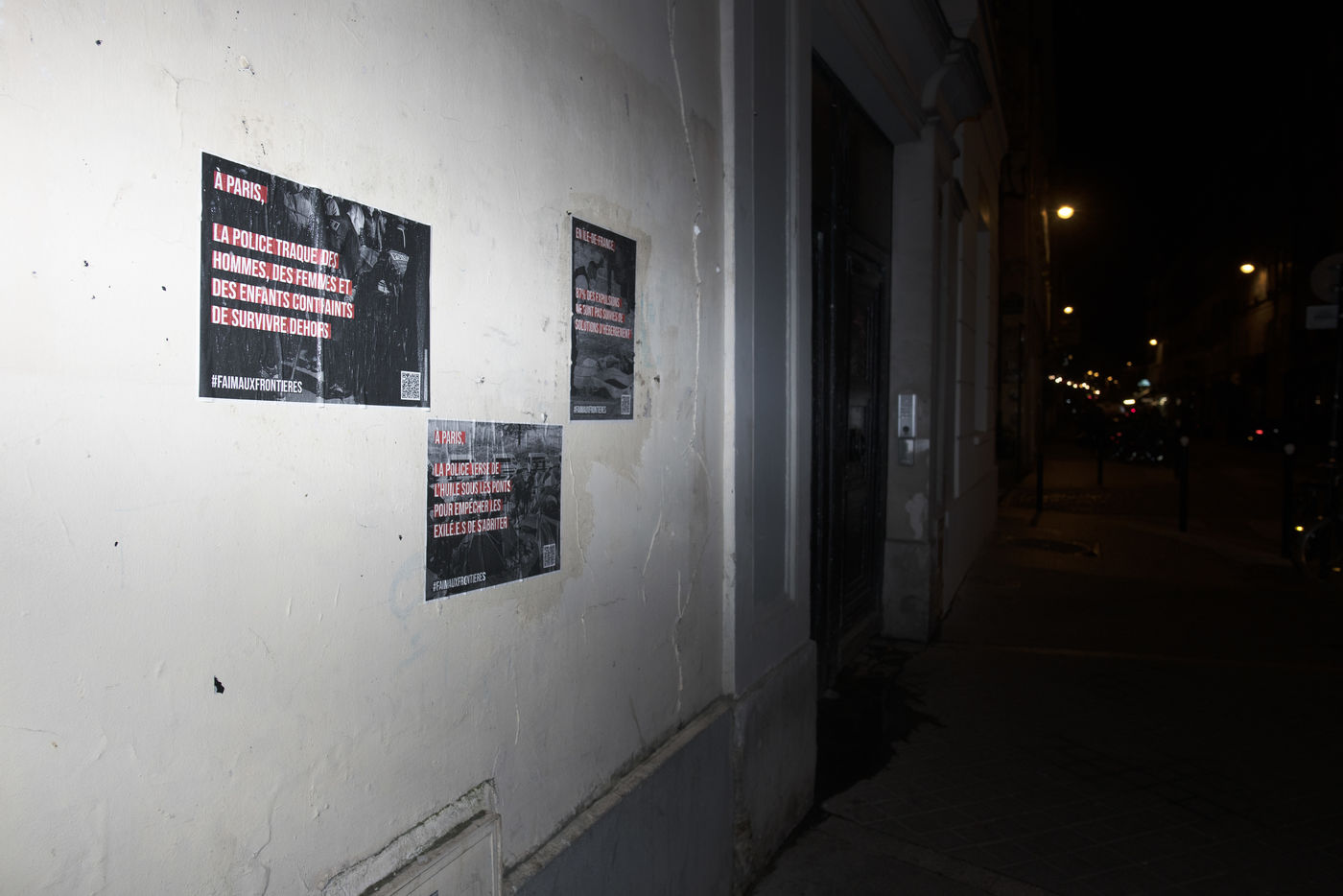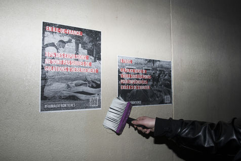 Dans la nuit du mercredi 9 février 2022, plusieurs membres de différents collectifs venant en aide aux réfugiés et exilés se sont réunis dans les rues de Paris pour coller des affiches dénonçant les violences policières envers les personnes exilées.