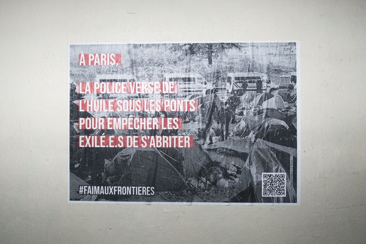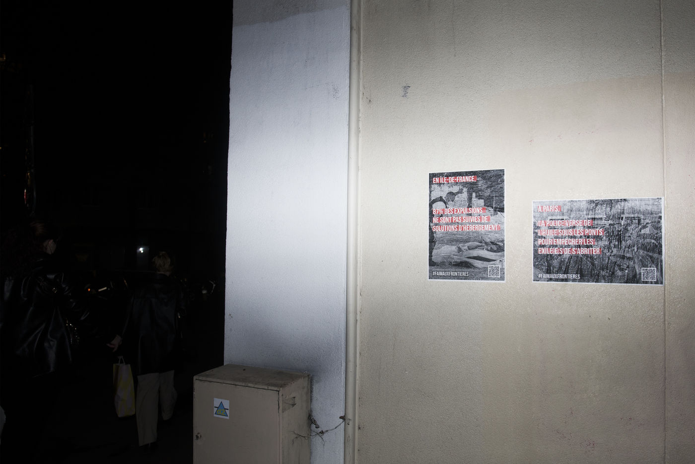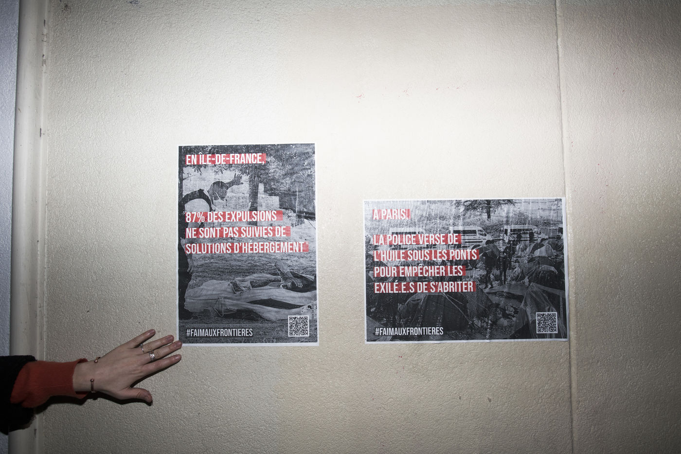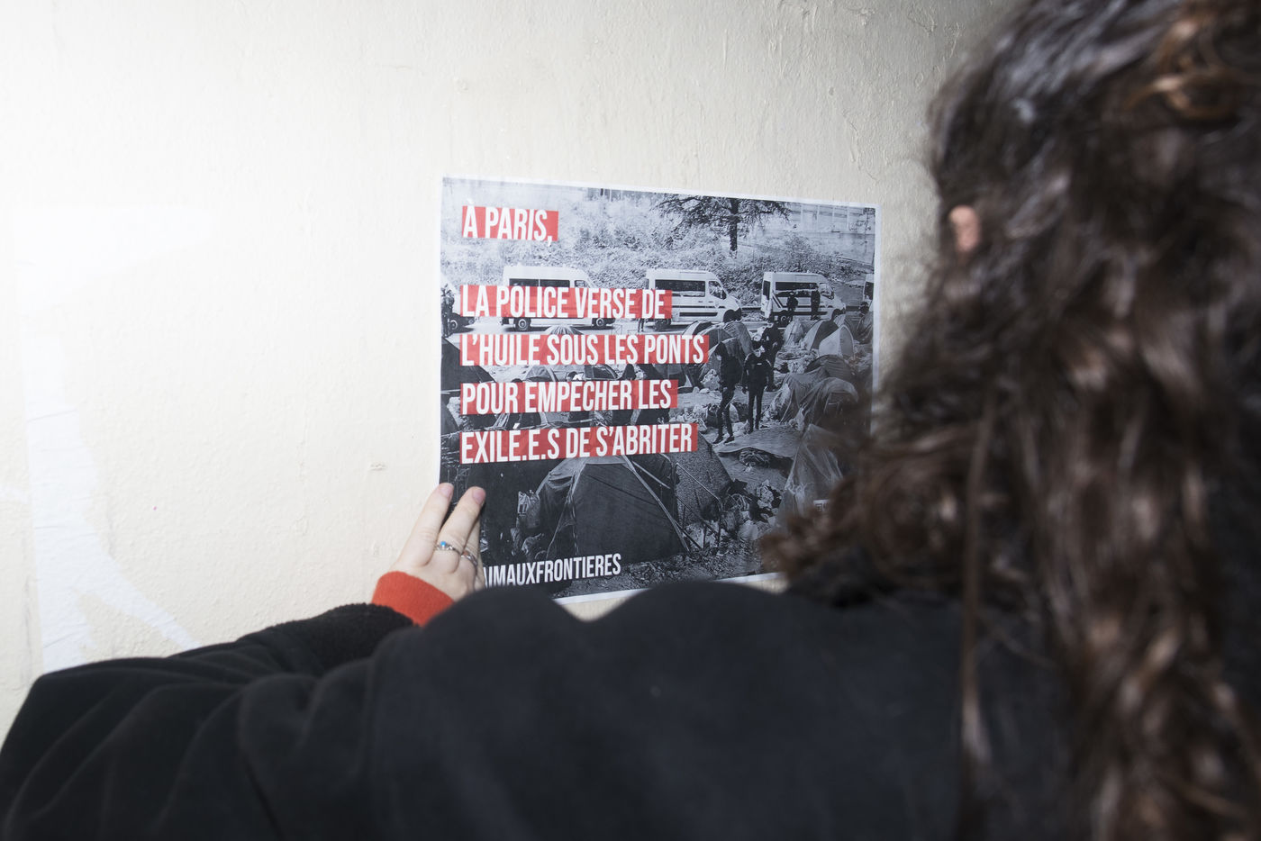 Dans la nuit du mercredi 9 février 2022, plusieurs membres de différents collectifs venant en aide aux réfugiés et exilés se sont réunis dans les rues de Paris pour coller des affiches dénonçant les violences policières envers les personnes exilées.