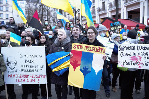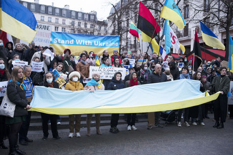 Demonstration in support of the Ukrainian people and against the war in Ukraine, in Paris, 19 February 2022, while sixty percent of the Russian army is already positioned around Ukraine.