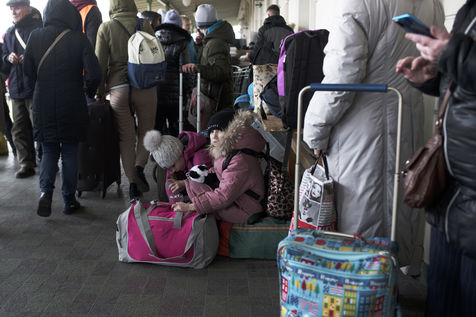 Ukrainian refugees waiting for transport to Europe in Przemysl