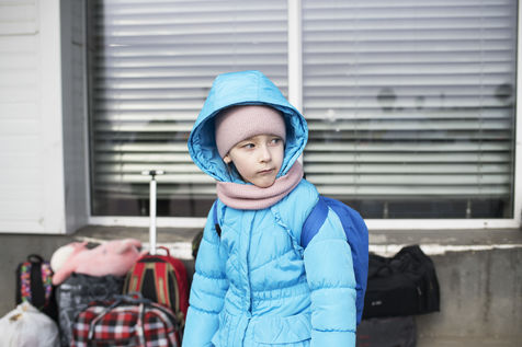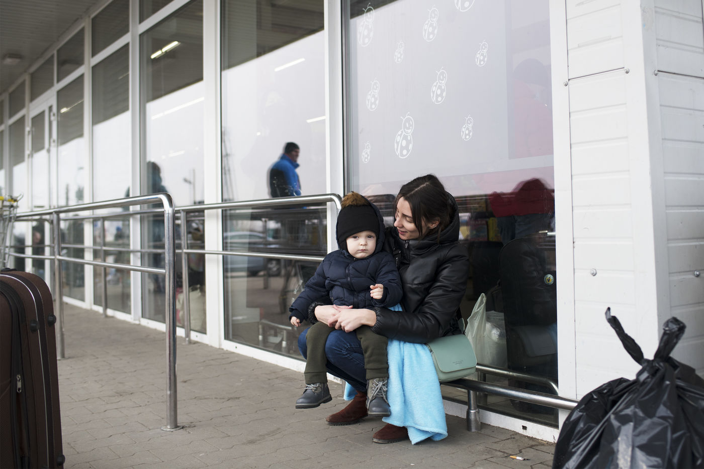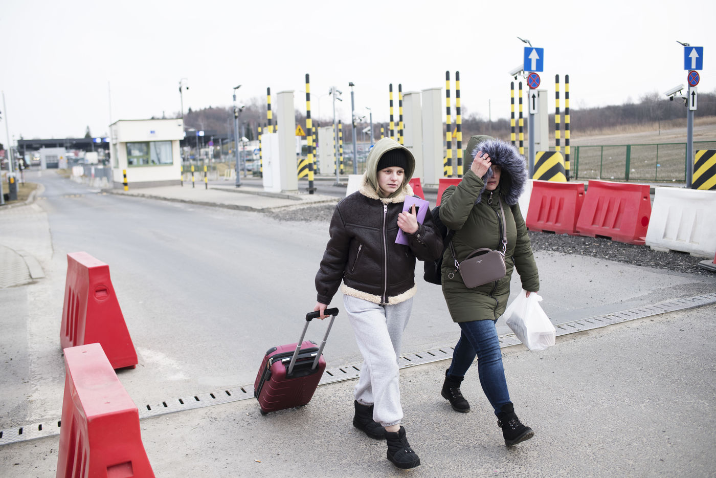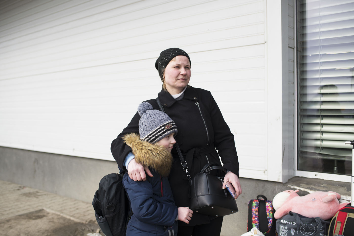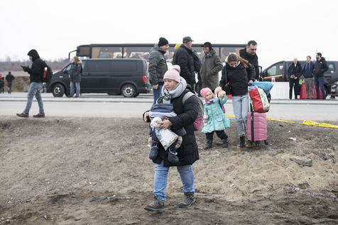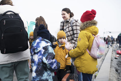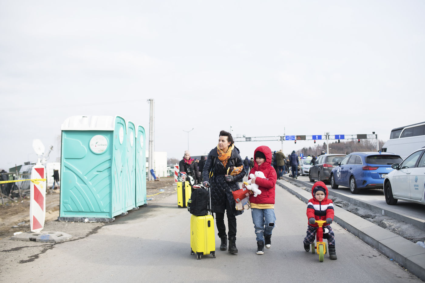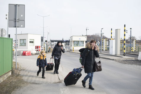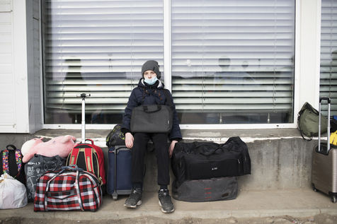 Ukrainian refugees wait for transportation to leave Medyka shortly after crossing the border between Ukraine and Poland. March 3, 2022.