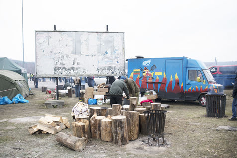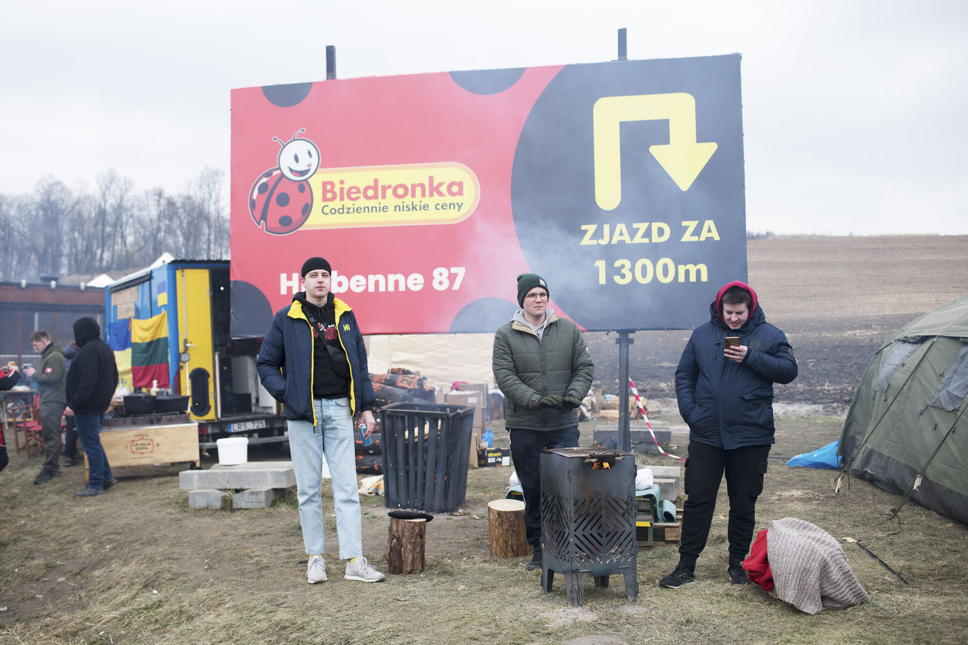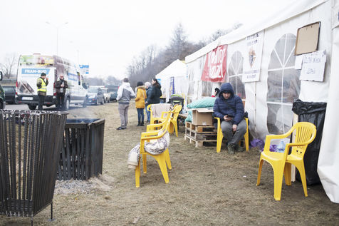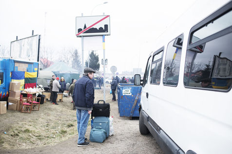 Des réfugiés ukrainiens traversent la frontière entre l'Ukraine et la Pologne aux environs de Hrebenne. Plusieurs associations sont présentes pour leurs venir en aide. Le 4 Mars 2022.