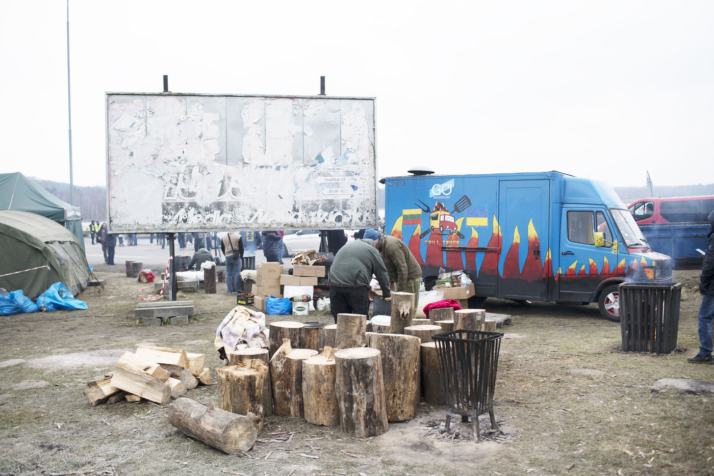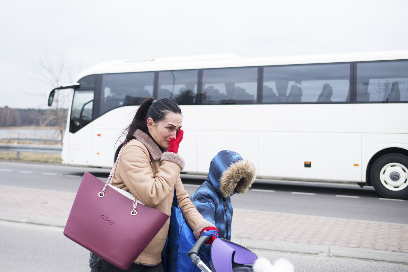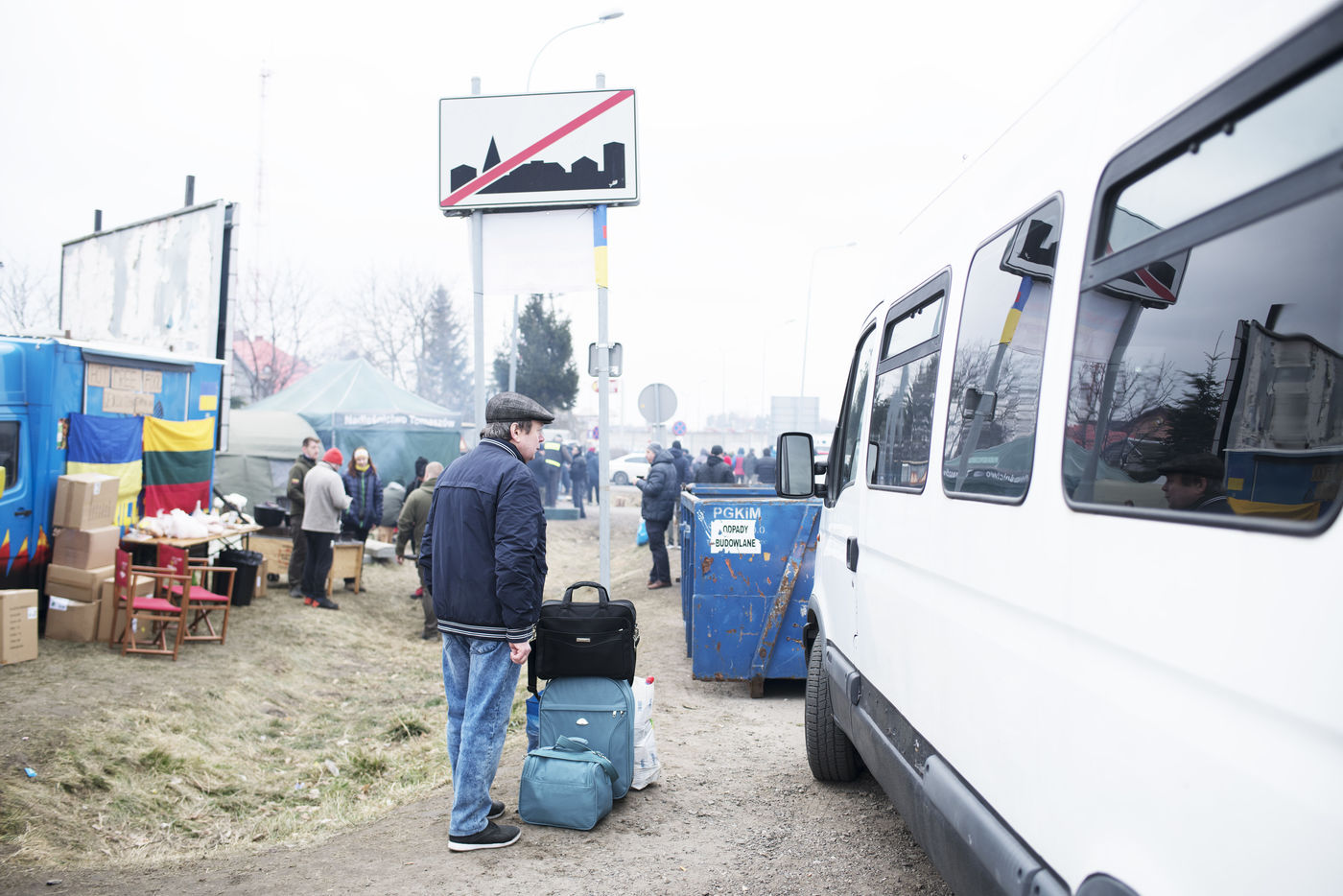Ukrainian refugees are crossing the border between Ukraine and Poland in the vicinity of Hrebenne. Several associations are present to help them. March 4th 2022.