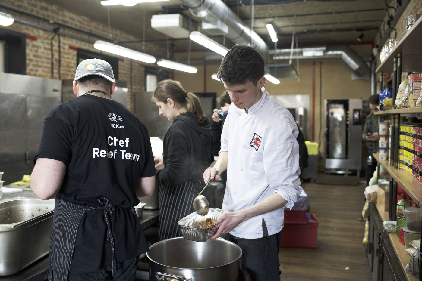 Depuis de début de la guerre en Ukraine, plusieurs groupes de volontaires se mobilisent à Lviv pour venir en aides aux réfugiés venus de l'Est de l'Ukraine. Ce groupe de volontaire prépare jusqu'a dix mille repas par jour dans un entrepôt de la banlieue de Lviv. Le 14 Mars 2022.