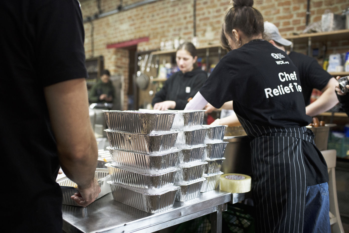 Since the beginning of the war in Ukraine, several groups of volunteers have been mobilizing in Lviv to help refugees from eastern Ukraine. This group of volunteers prepares up to ten thousand meals a day in a warehouse in the suburbs of Lviv. March 14, 2022.