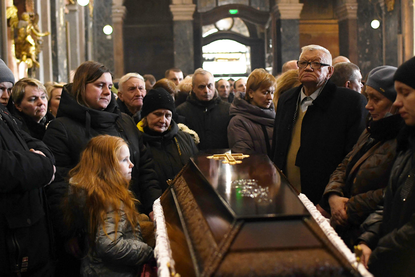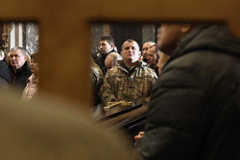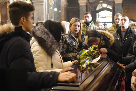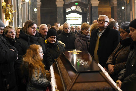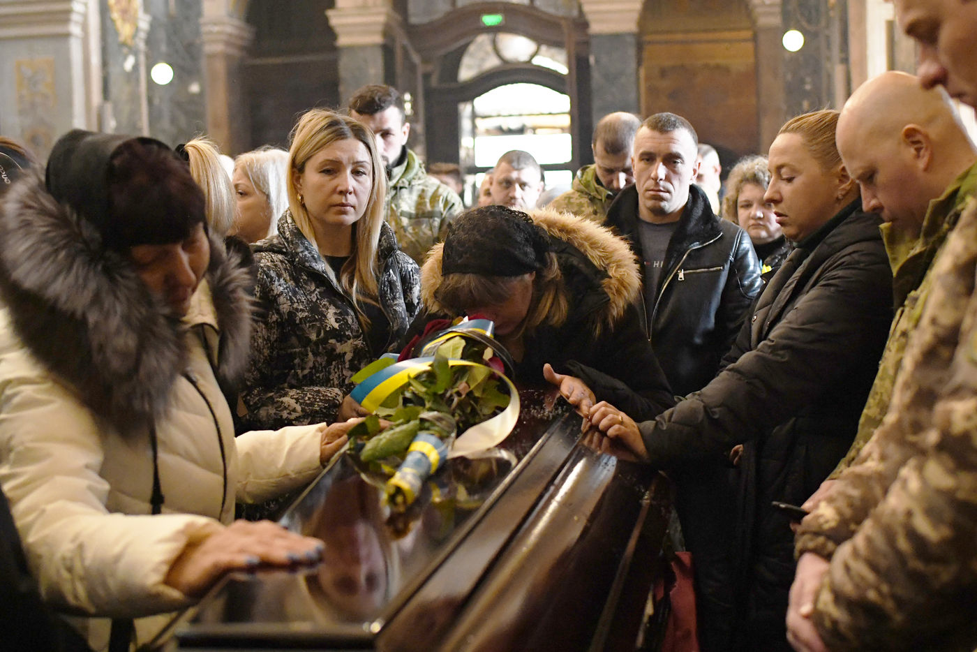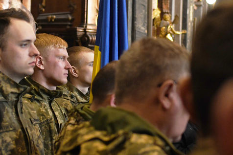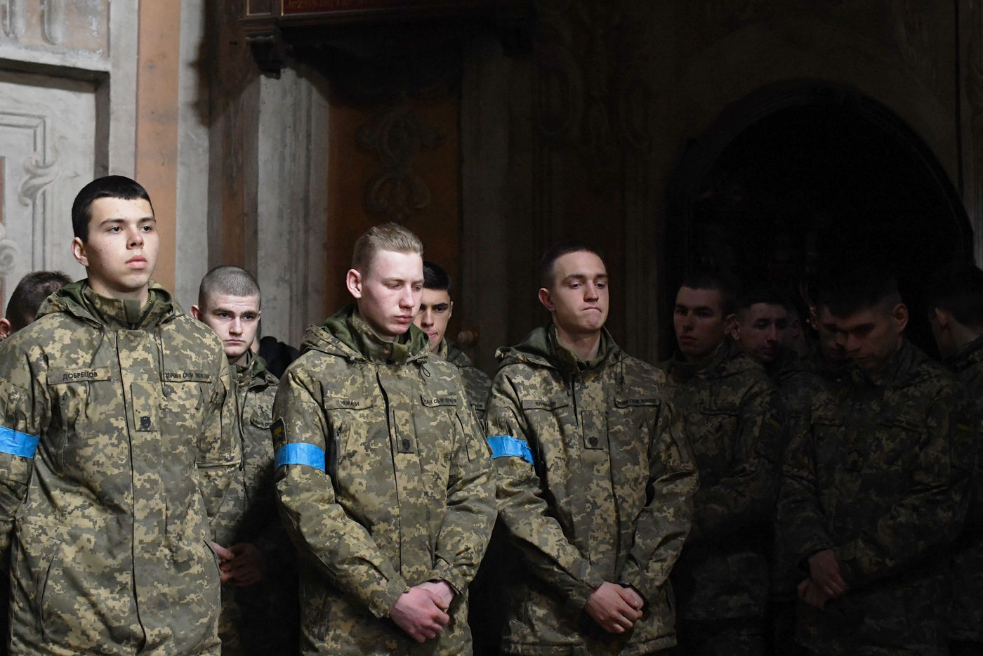 Ce Mardi 15 mars 2022, à Lviv, dans l'église Saint Peter and Paul Garrison, prenaient place les funérailles de quatre soldats ukrainiens morts au front au cours de la guerre entre l'Ukraine et la Russie. Les quatre soldats ont été tués dimanche dans l'attaque de la base d'entraînement militaire de Yavoriv, à l'Ouest de l'Ukraine. L'attaque aurait tué au moins 35 personnes. Après les funérailles, mardi, se sont suivis les enterrements de trois des soldats, Oleg Yaschyshyn, Serhiy Melnyk et Rostyslav Romanchuk. Kyrylo Vyshyvanyi, le quatrième soldat, a été enterré dans sa ville natale, à Duliby, dans la région de Lviv.