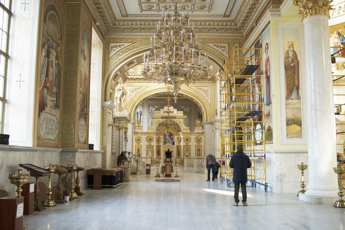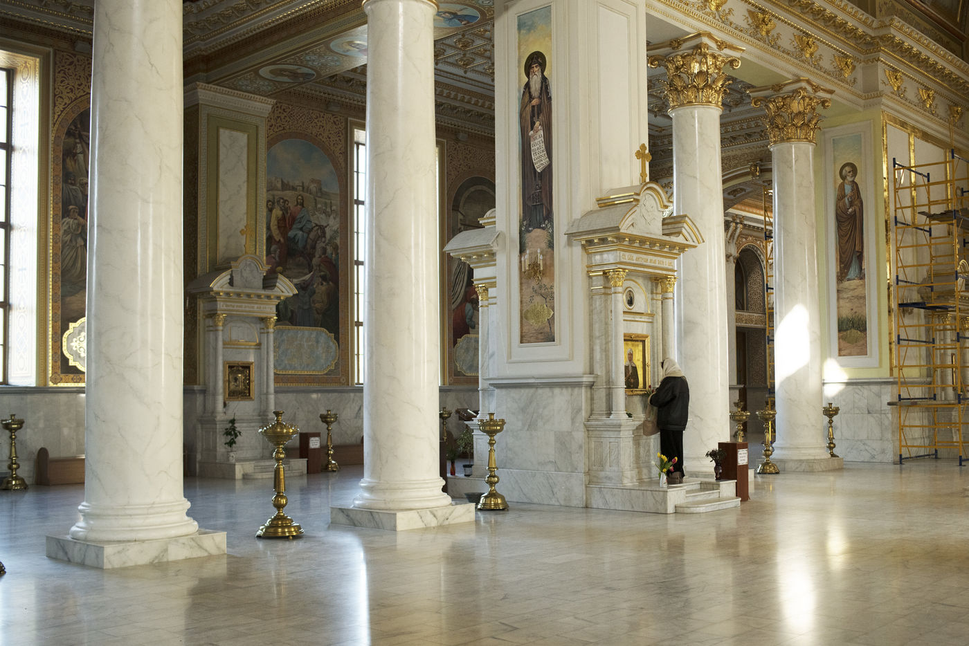 Ukrainians pray in the Cathedral of the Transfiguration in Odessa