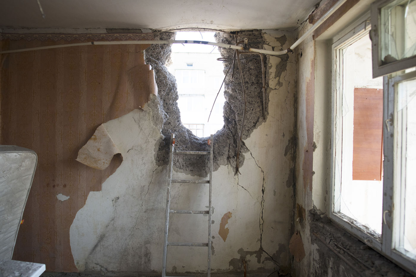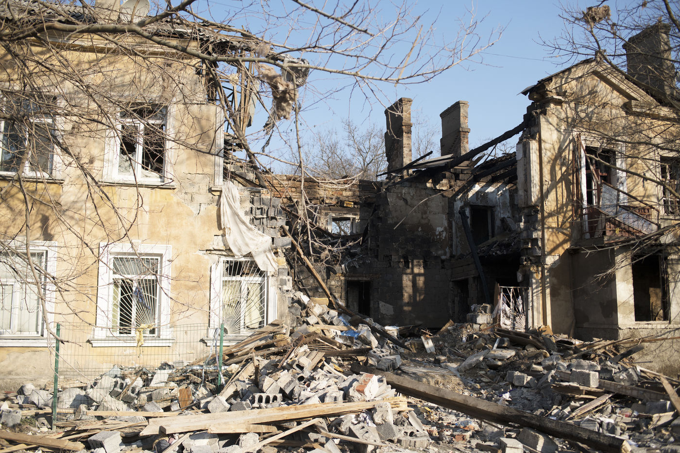 Every day, the Russian bombardments multiply on the city of Mykolaïv. Many buildings have been hit, as well as several infrastructures, hospitals and hotels. Here, the houses of many civilians. March 24, 2022, Mykolaïv, Ukraine.
