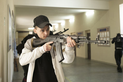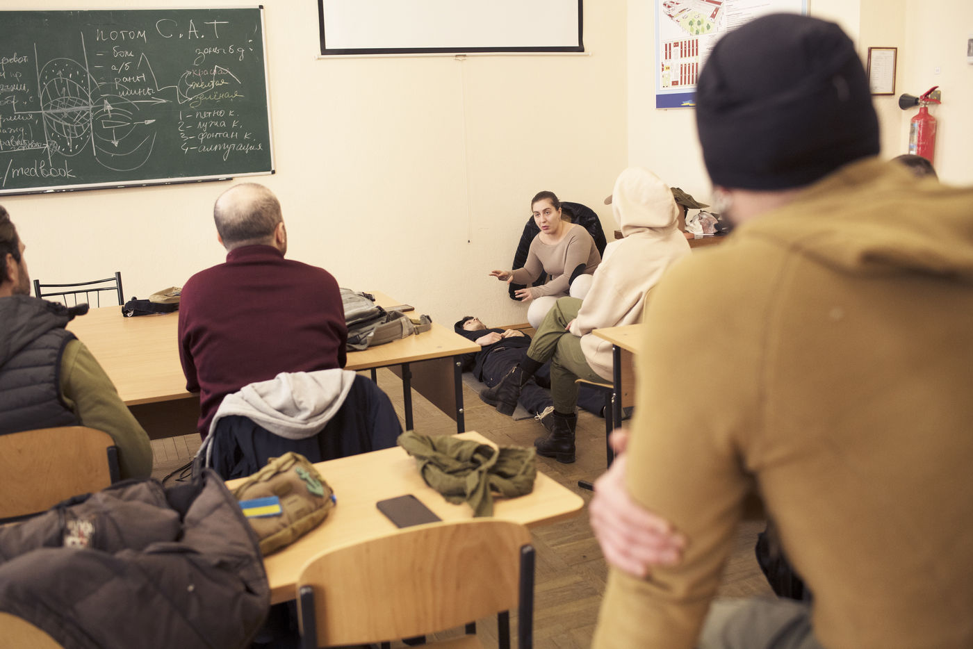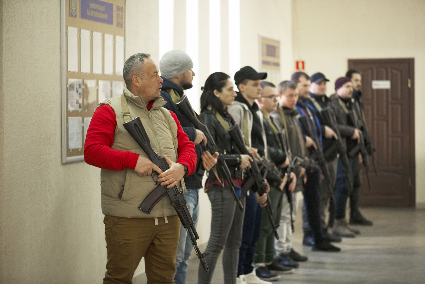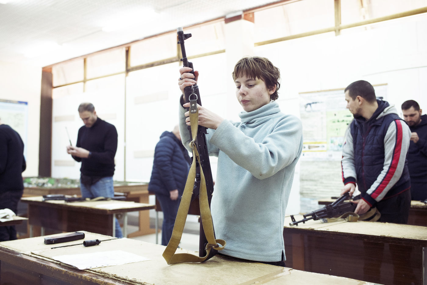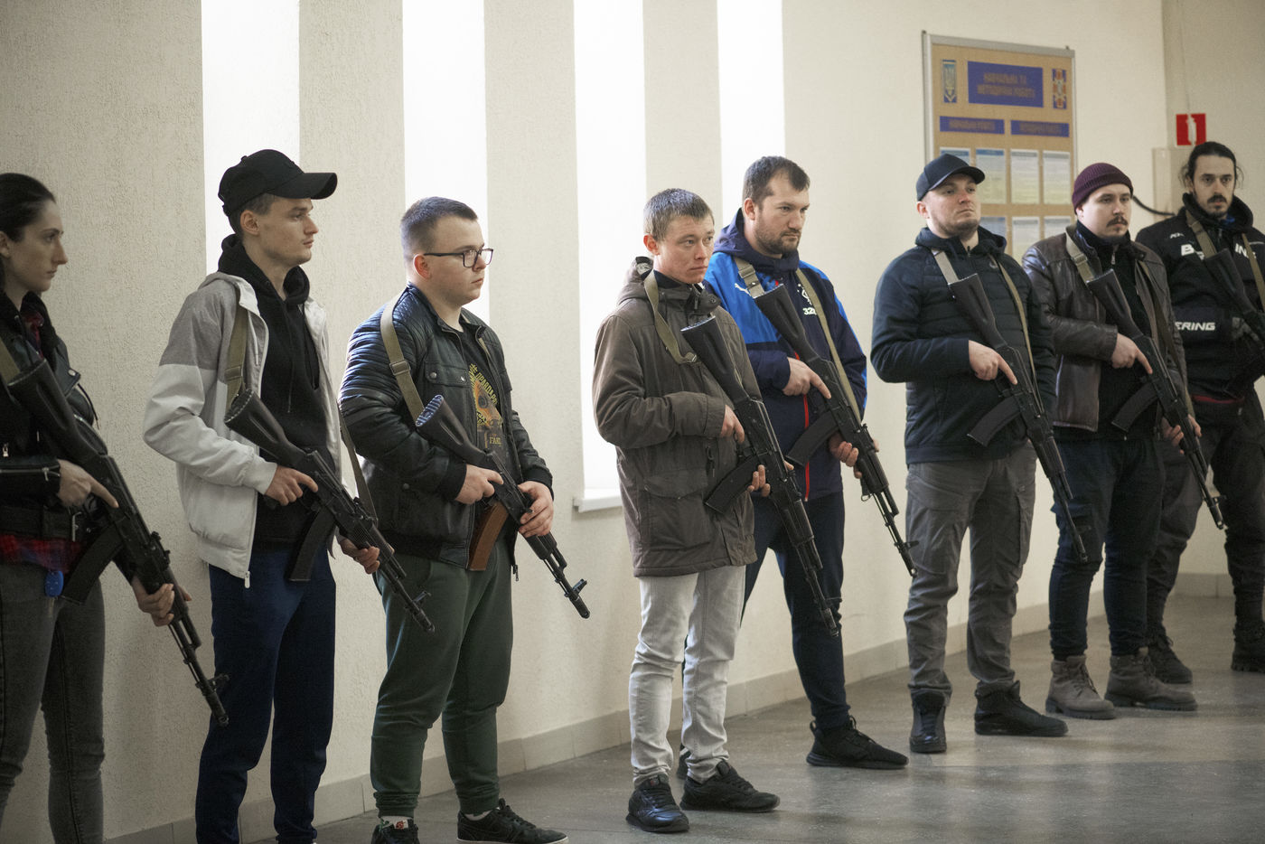 In Odessa, civilians come to train to hold a weapon, shoot, behave in a war zone or learn first aid to be ready to face a Russian attack, March 26, 2022.