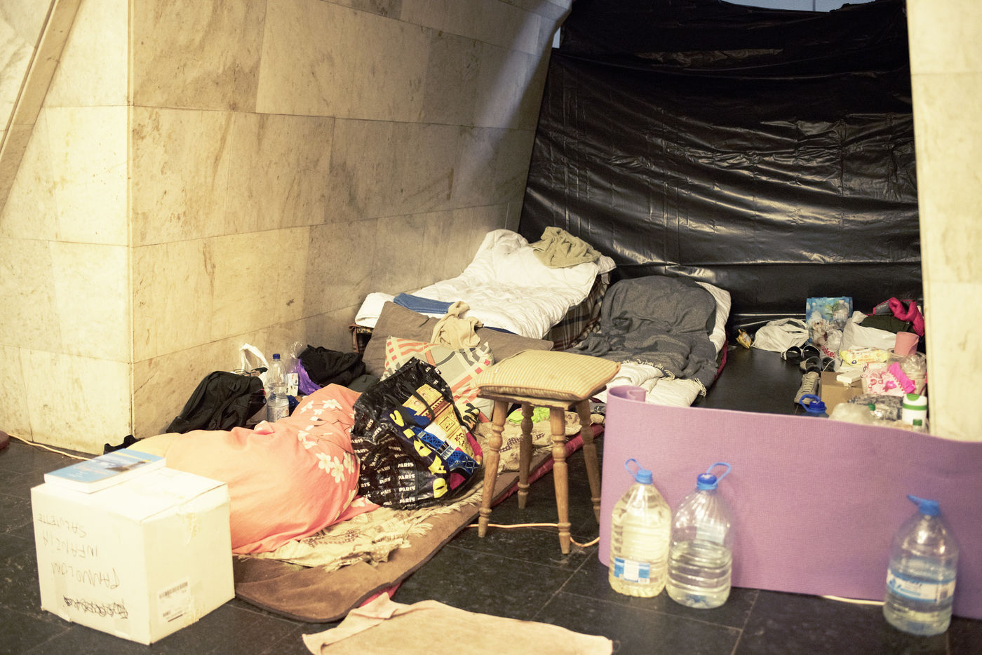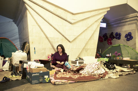 In the city of Kharkiv, 40 kilometers from the Russian border, bombed for weeks, many civilian buildings were destroyed by Russian missiles. Since the beginning of the war, thousands of inhabitants have been taking shelter in the city's metro stations. Half a train car or a few square meters on one of the platforms have become the living space of some families for more than two months now. May 16, 2022, in Pushkinska station.