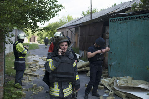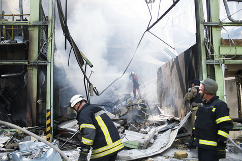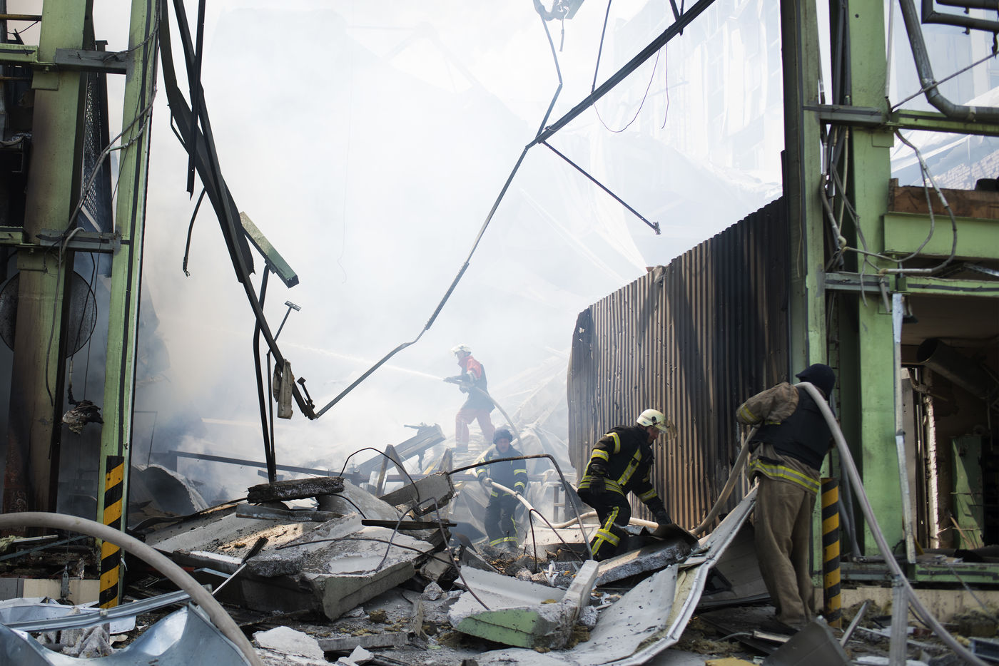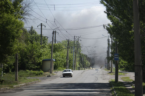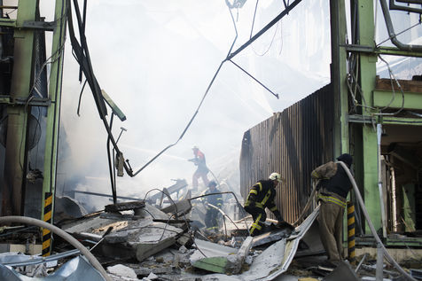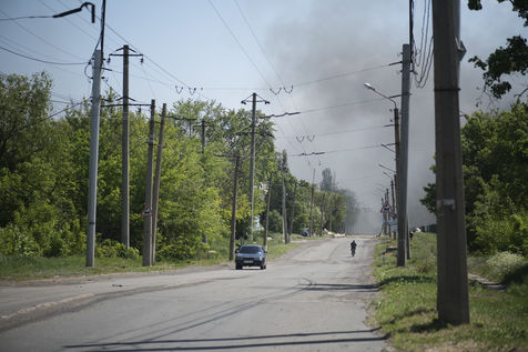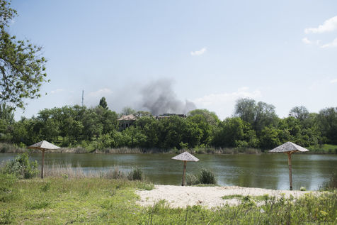 À l'Est de l'Ukraine, les russes essayent d'avancer vers Bakhmout. Ce 27 mai 2022 plusieurs missiles ont touché des bâtiments civils de la ville comme cet entrepôt dans la matinée.
