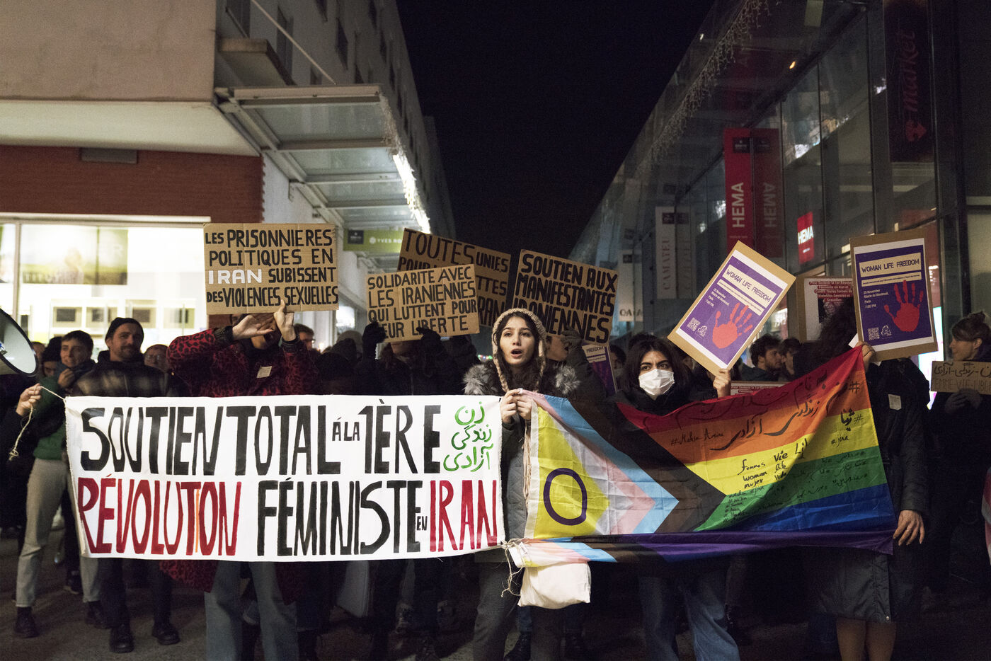 Marche contre les violences faites aux femmes et aux minorités de genre, entre la mairie de Montreuil et la place de la République, organisée par l'Assemblée Féministe de Montreuil, le 25 novembre 2022.