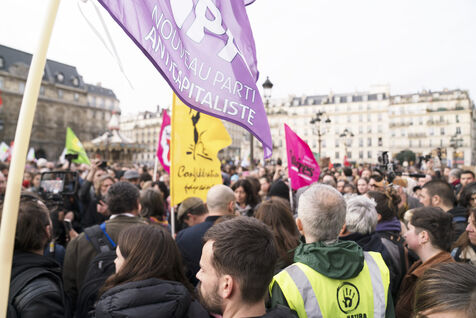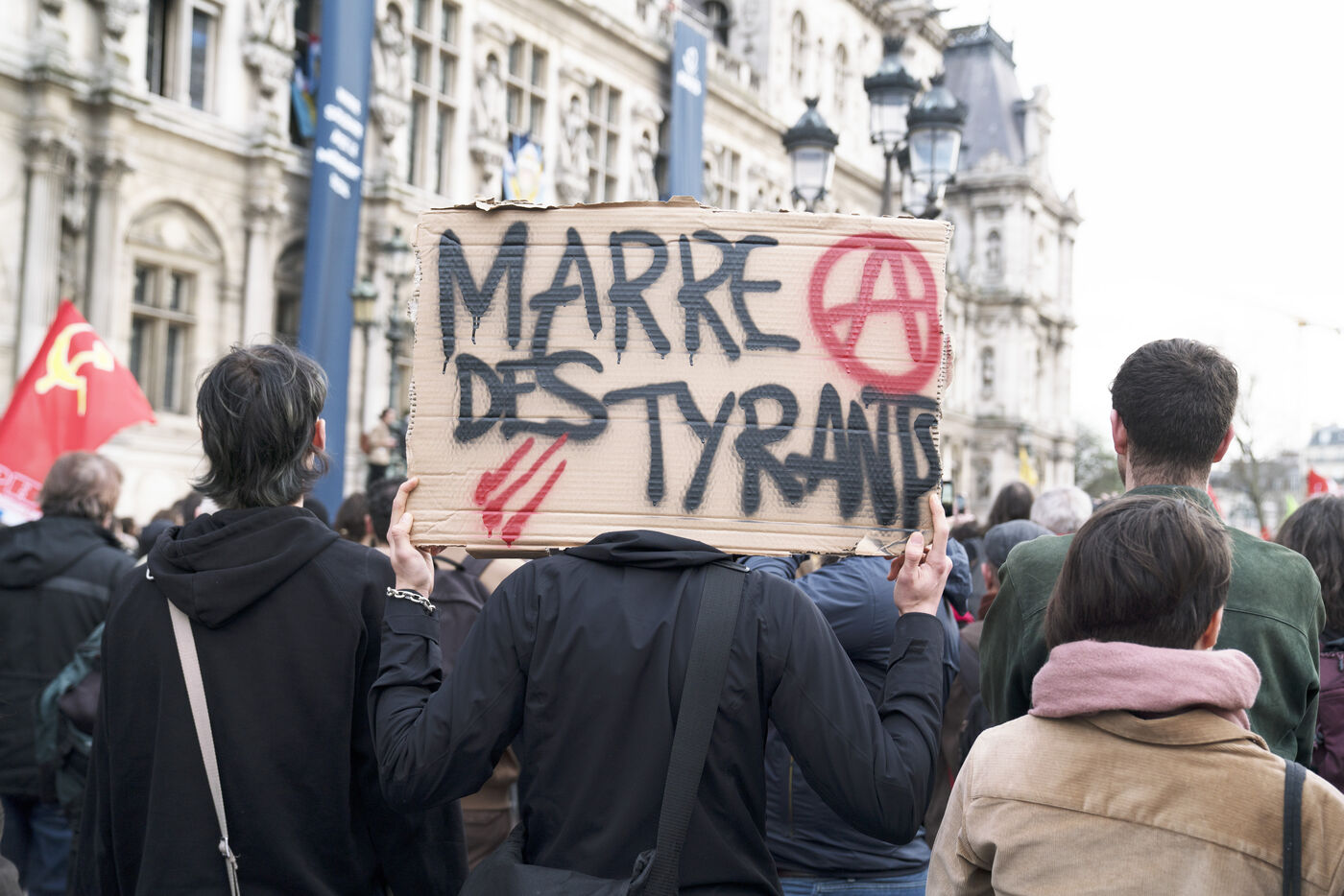New evening of demonstration against police violence, pension reform and 49.3. Demonstrators took to the streets of Paris again, after the announcement of the use of the 49.3 in the Assembly for the pension reform, but also after the police violence that took place in Sainte-Soline, on Saturday March 25. A rally first took place at the Hôtel de Ville in tribute to the victims of police violence, especially to the two people who fell in coma after the Sainte-Soline demonstration against the mega-basins, then a wild demonstration went through Paris before being stopped at Voltaire. Thursday March 30th 2023.