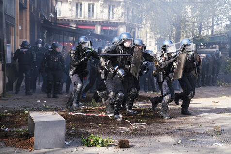General strike and demonstration against the pension reform and the 49.3. Demonstrators took to the streets of Paris again, for this last day of mobilization before the decision of the Constitutional Council. The demonstration started from Opéra to Place de la Bastille. Numerous tear gas and police charges. Thursday, April 13, 2023.