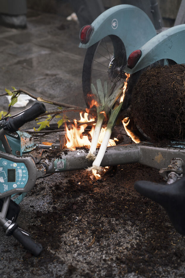 Manifestation après la décision du Conseil Constitutionnel concernant la réforme des retraites. Les manifestants ont de nouveau pris les rues de Paris, allumant de nombreux feux après que le Conseil Constitutionnel ait validé l'essentiel de la réforme des retraites. Vendredi 14 avril 2023.