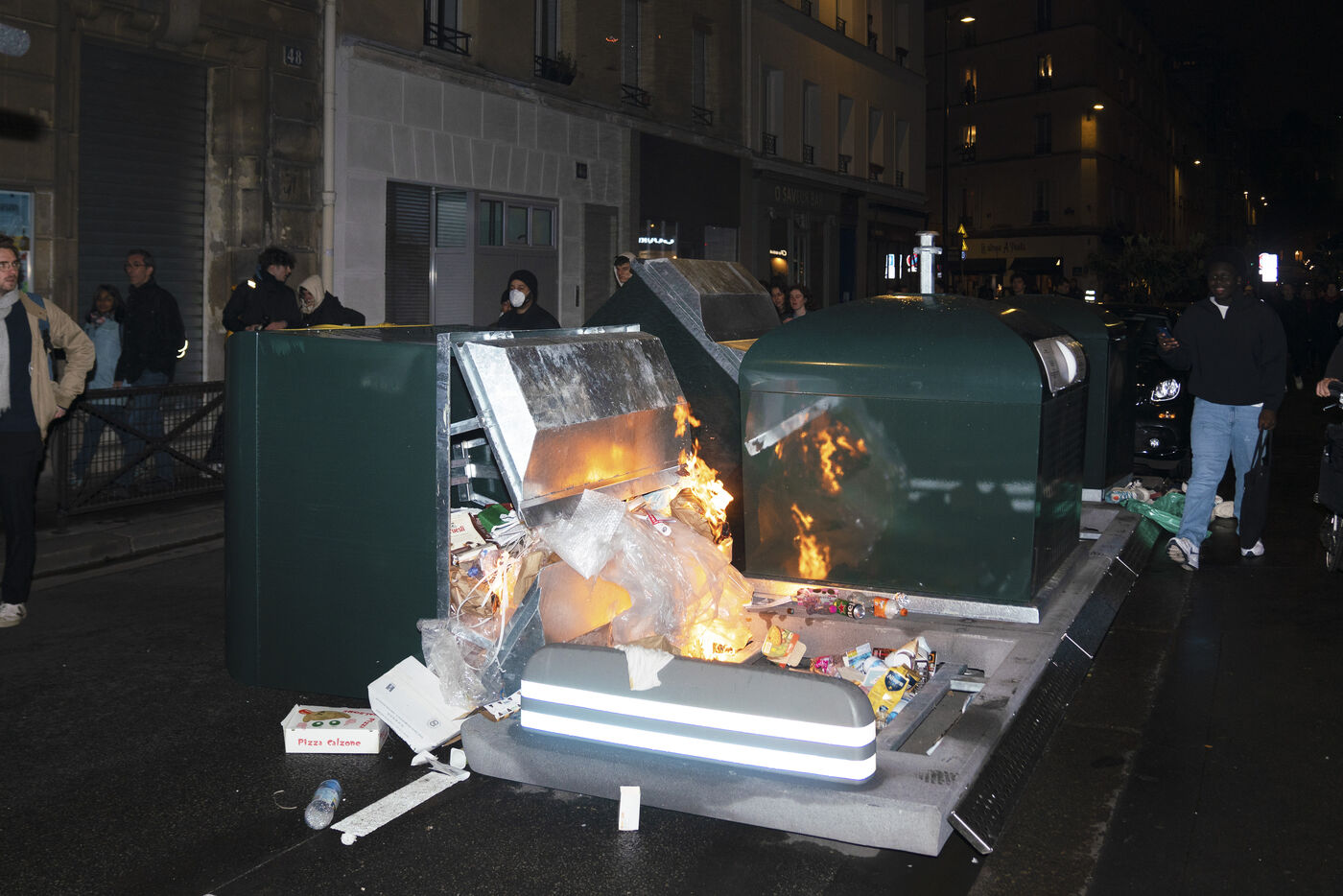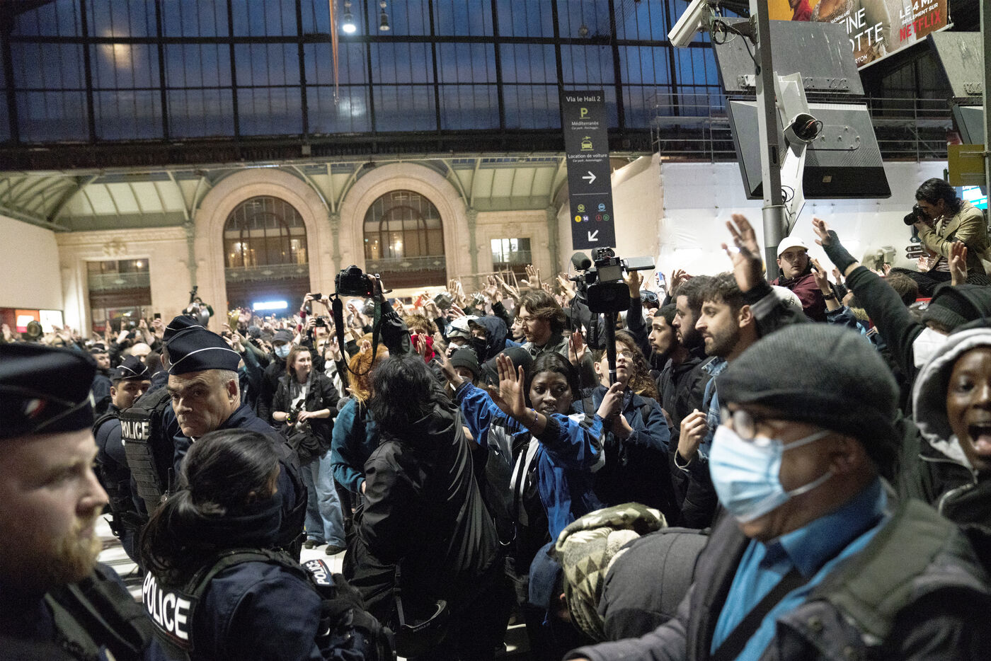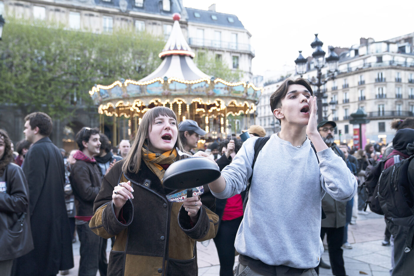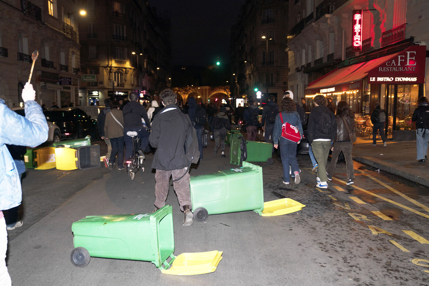 Manifestation nocturne contre la réforme des retraites le lundi 24 avril 2023 : concert de casseroles devant l'Hôtel de ville, retour de Ndiaye à Gare de Lyon et poubelles en feu dans les rues de Paris.
