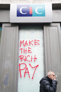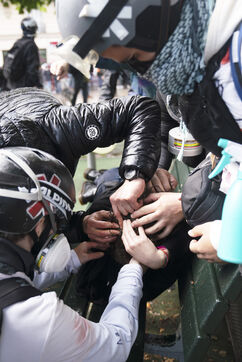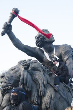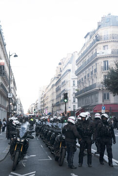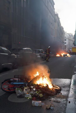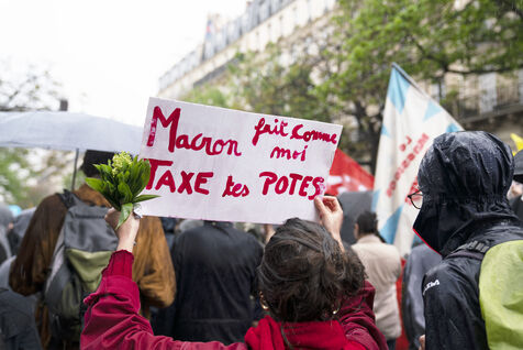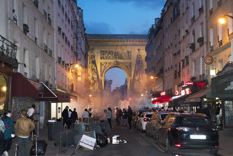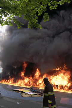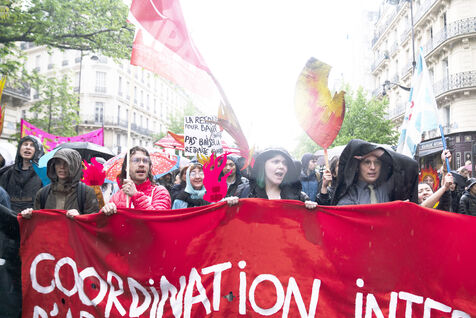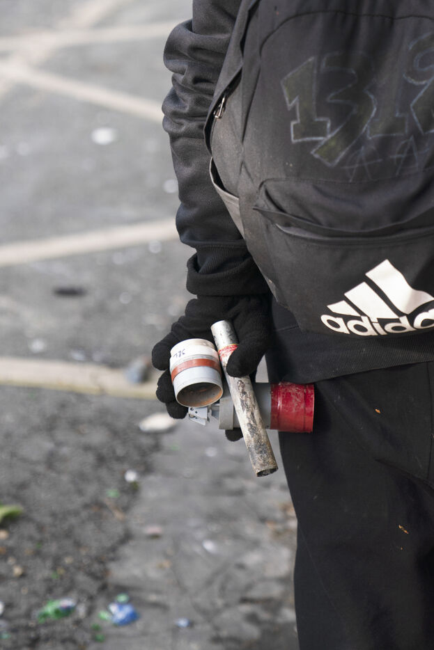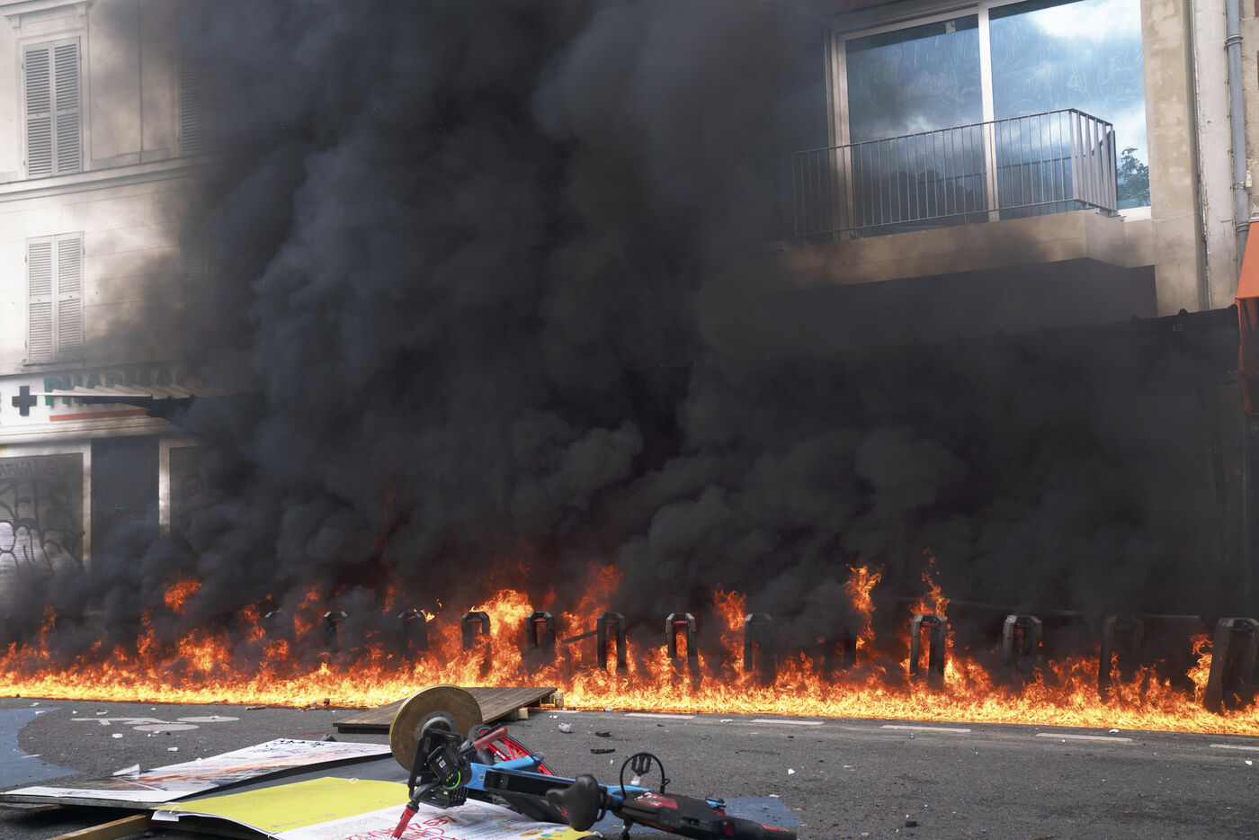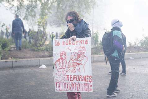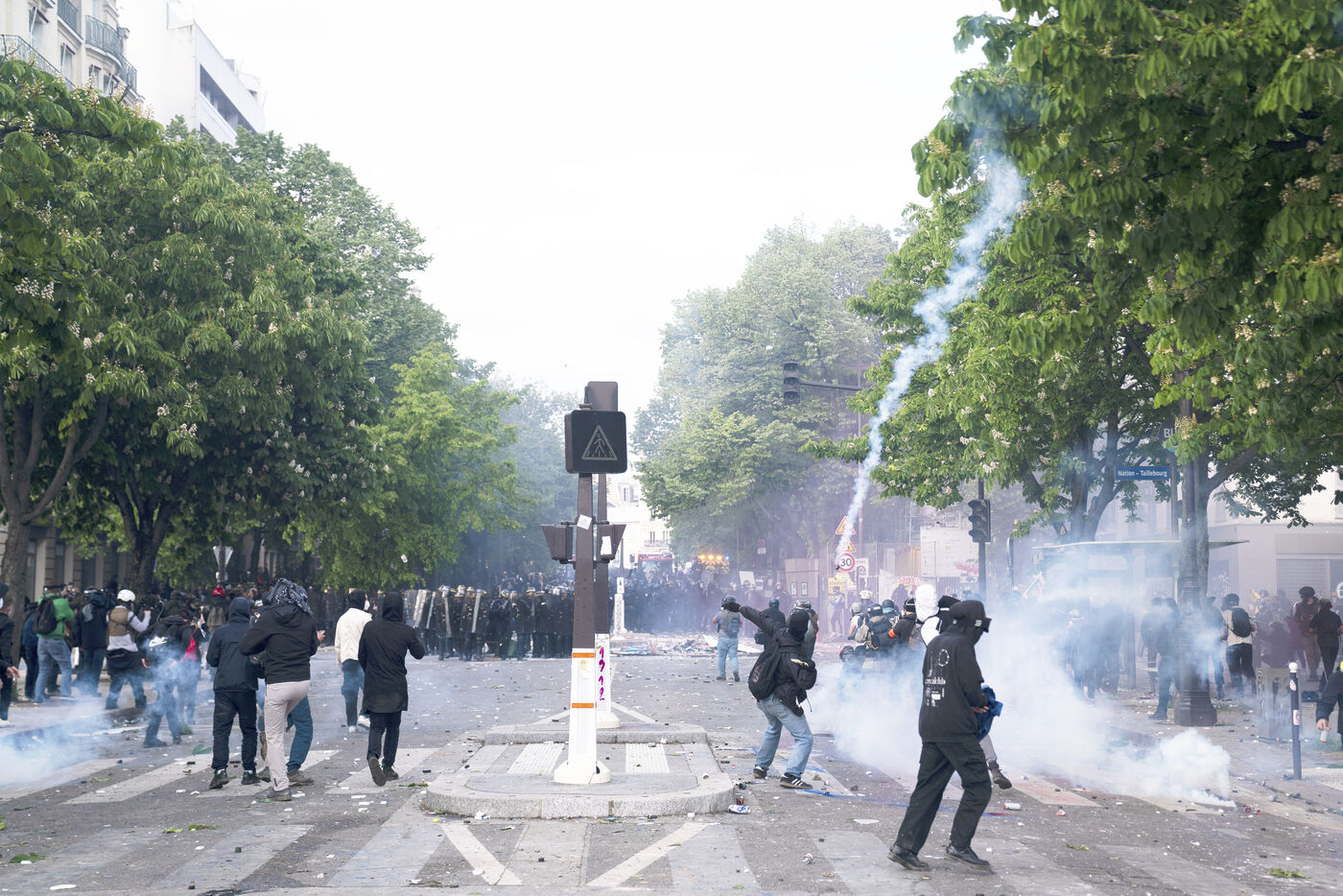 Manifestation du 1er mai pour les travailleurs et la justice sociale à Paris. Les manifestants ont de nouveau pris la rue pour manifester contre la réforme des retraites et pour les droits sociaux. De nombreux affrontements ont eu lieu avec les forces de l'ordre. Entre Place de la République et Nation, le 1er mai 2023, à Paris.
