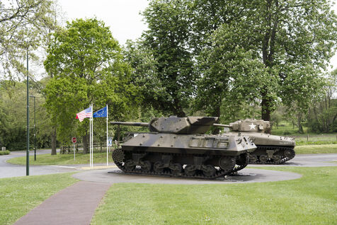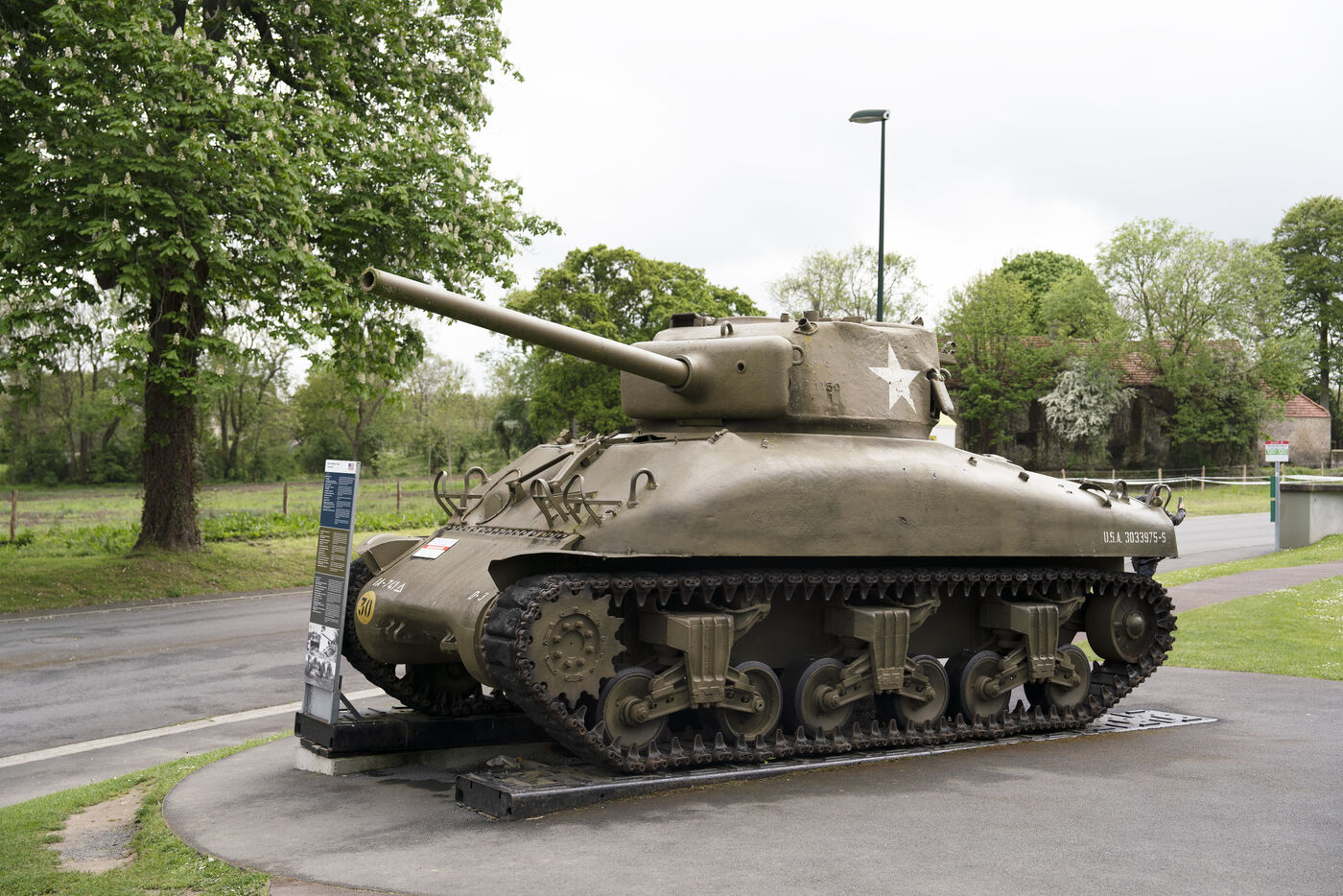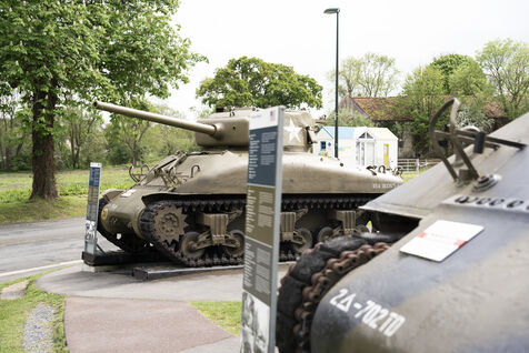 Illustration du Overlord Museum, musée consacré à la bataille de Normandie, à Colleville-sur-Mer. Le musée retrace l'histoire des six armées engagées dans la bataille de Normandie, du débarquement à la libération de Paris. Il se trouve près de la plage d'Omaha Beach, un des sites du débarquement allie du 6 juin 1944, symbole de la Seconde Guerre Mondiale. Le 10 mai 2023.