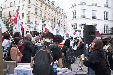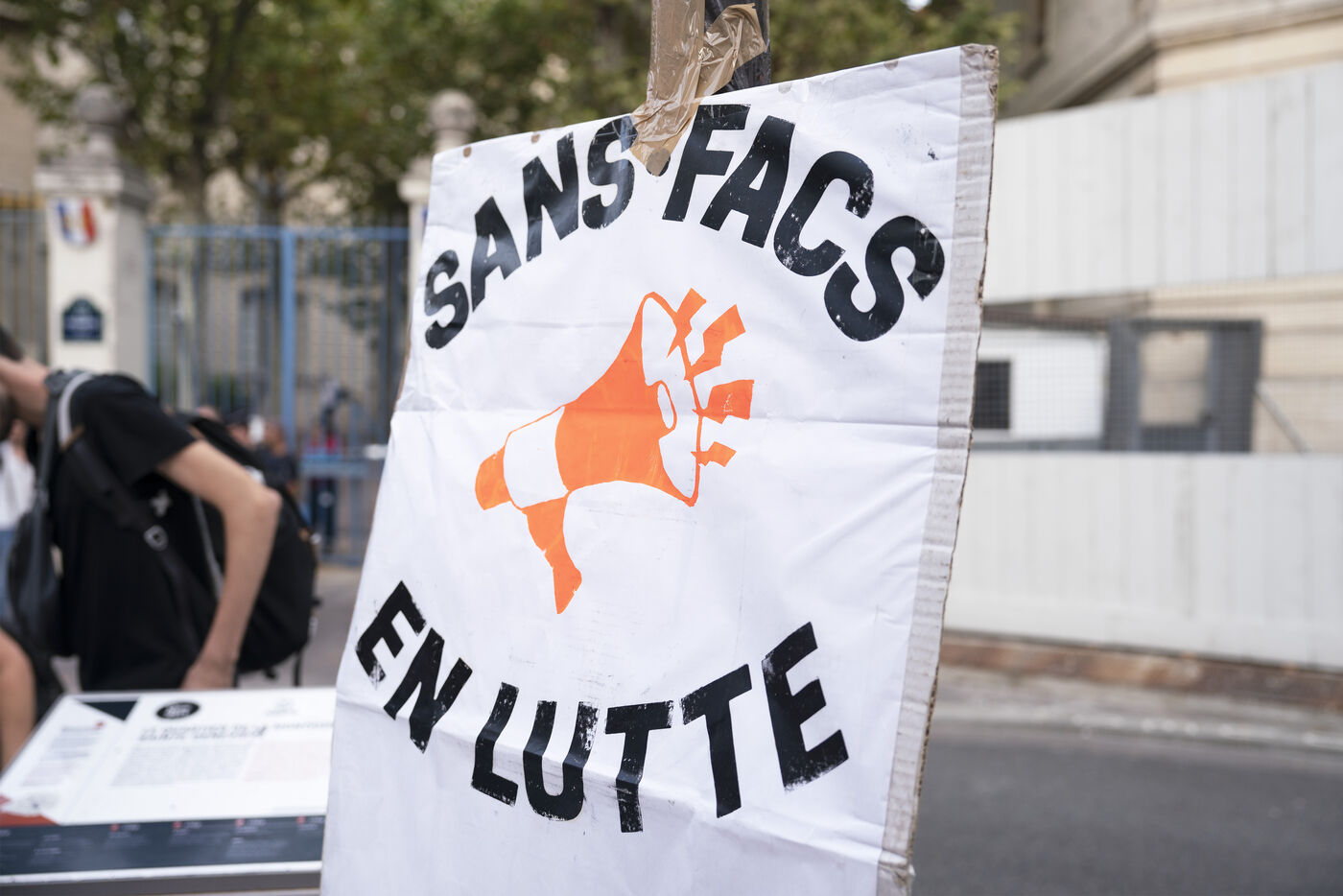 Gathering of students who did not obtain a master's degree and of all sans-fac students as part of the day of mobilization against university selection, on Tuesday, September 19, 2023, in front of the Ministry of Higher Education. Shortly after the start of the new academic year, many students have failed to obtain a course of study via Parcoursup or find my master's degree.