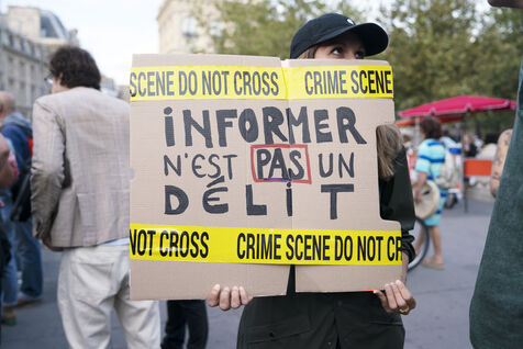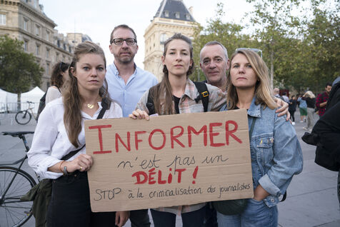 Gathering in support of Ariane Lavrilleux, journalist for Disclose NGO, searched and taken into custody by the DGSI. Around 100 people gathered at Place de la République in Paris on the evening of Wednesday September 20, 2023, as the journalist has been in police custody for over 37 hours. DGSI investigators are accusing her of writing five articles on French arms sales abroad. The protesters and the investigative website Disclose NGO denounce, in addition to the arrest and search of the journalist, a violation of the confidentiality of sources.