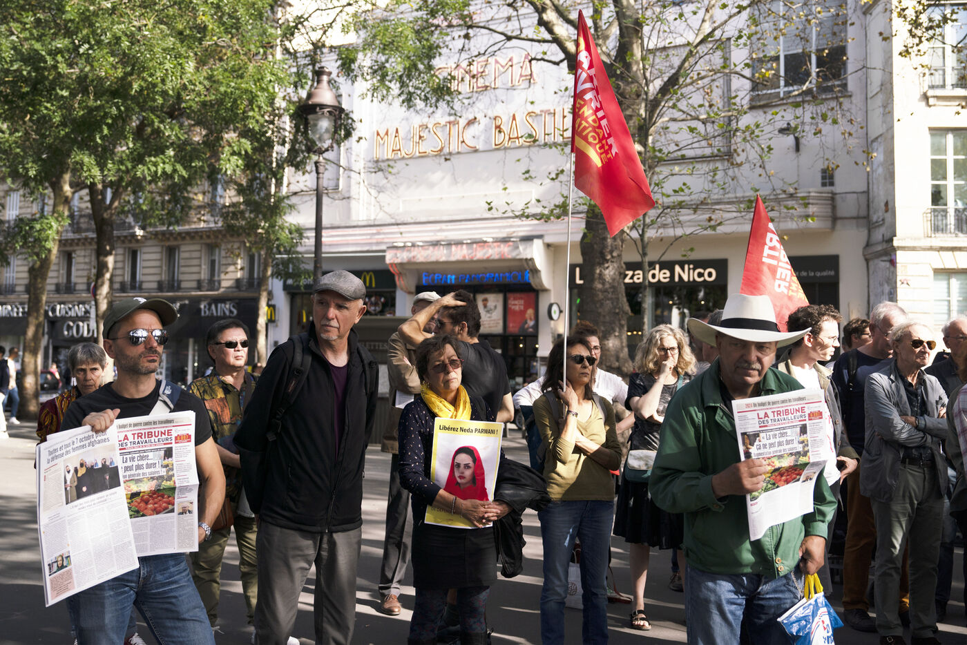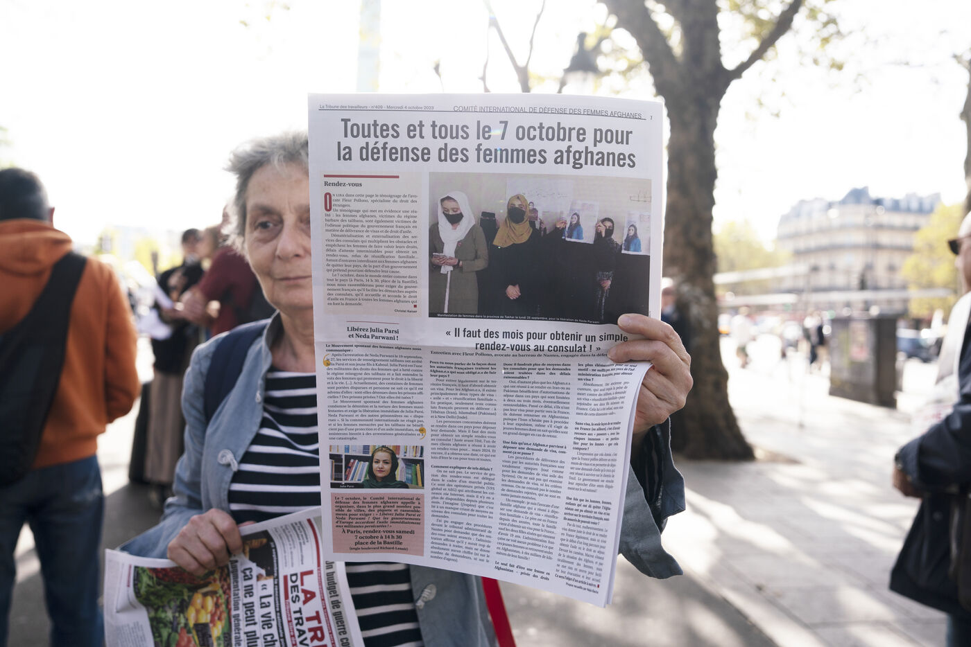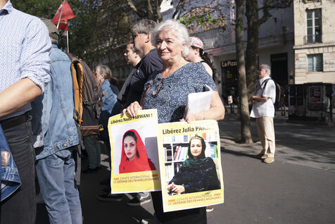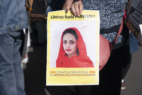 Rassemblement en soutien aux femmes afghanes et pour demander l'asile immédiat pour les femmes afghanes persécutées notamment Julia Parsi et Neda Parwani, place de la Bastille, le 7 octobre 2023.