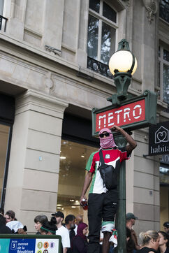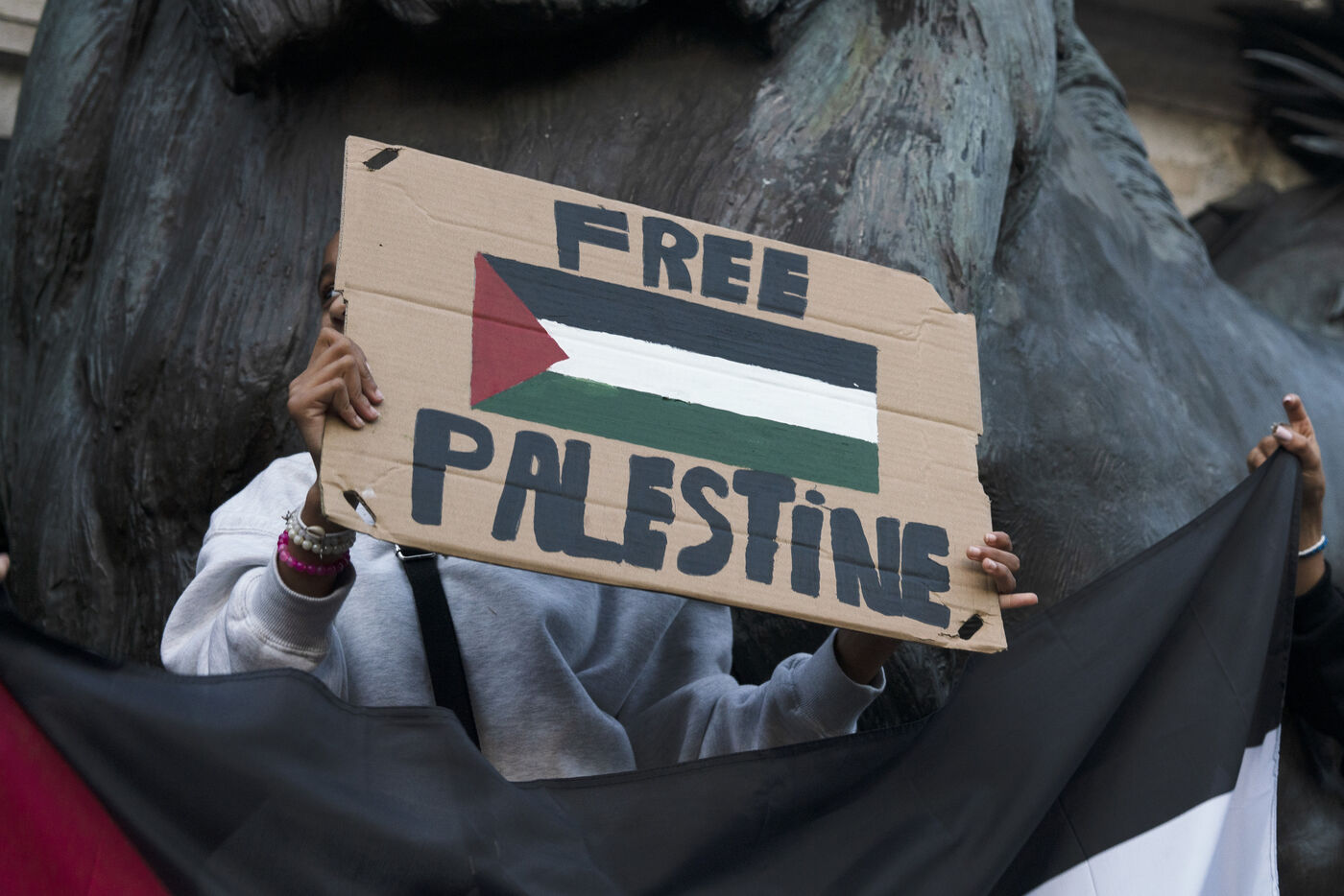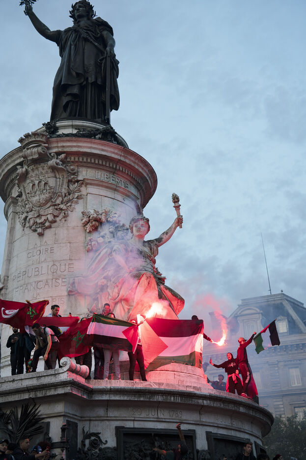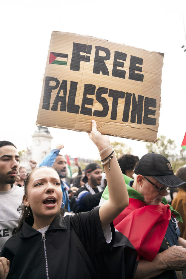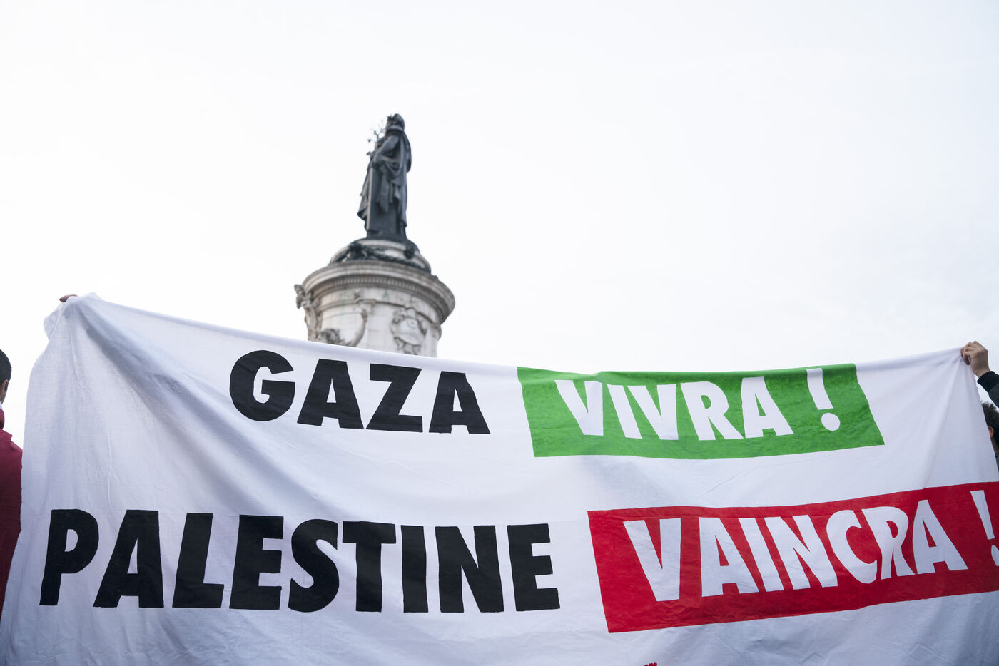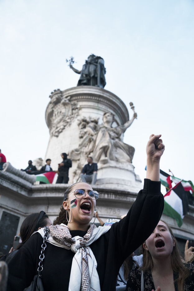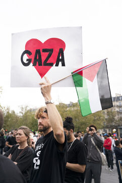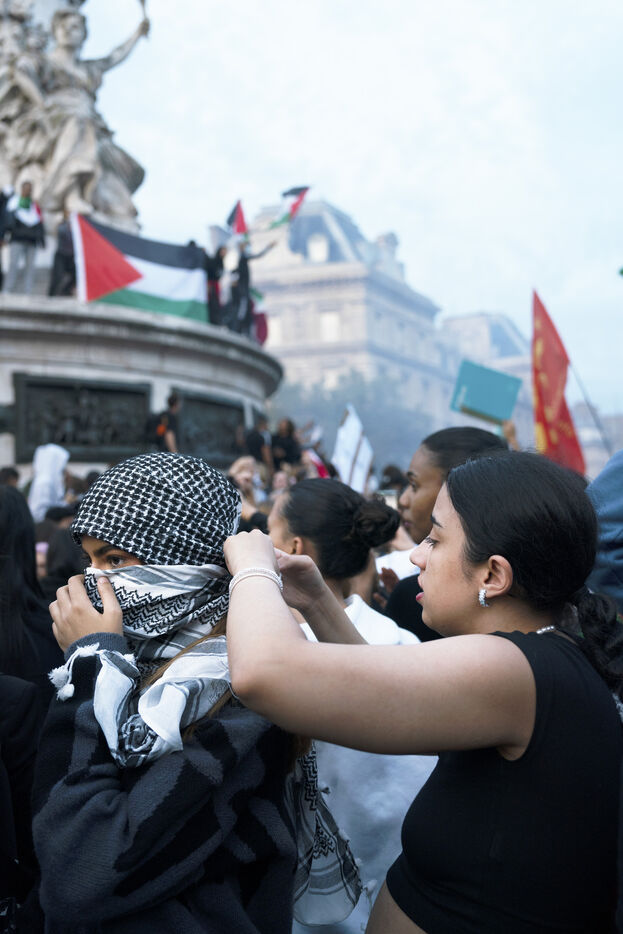 Gathering in support of the Palestinian resistance in Place de la République, Paris, following the recent clashes between Israel and Hamas. Gaza City has been repeatedly bombed and many Palestinian civilians killed. October 12, 2023, Paris.