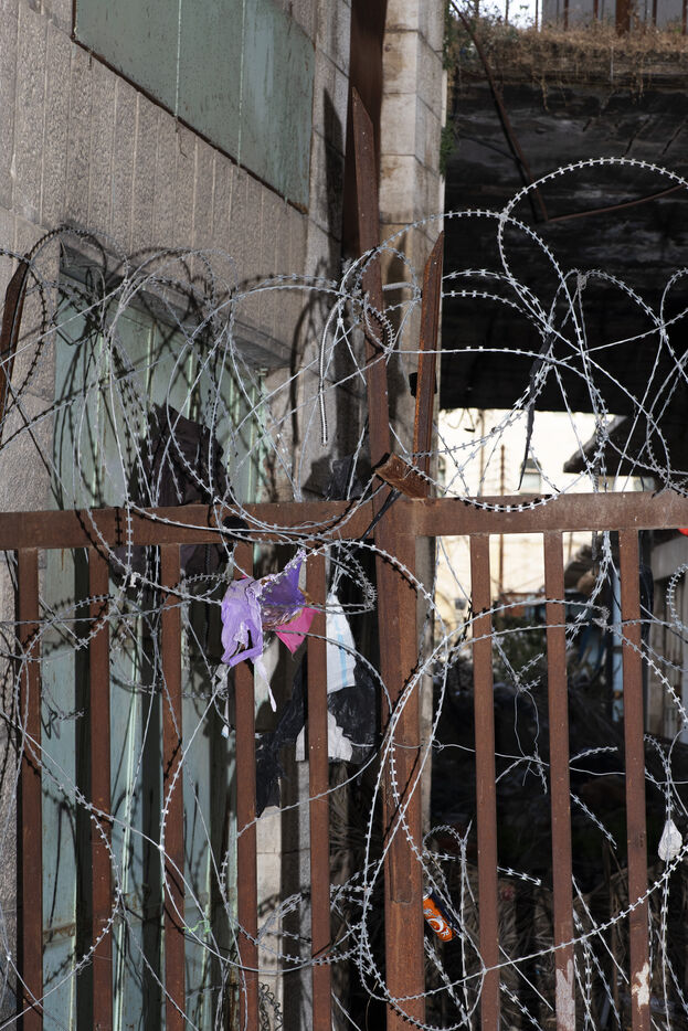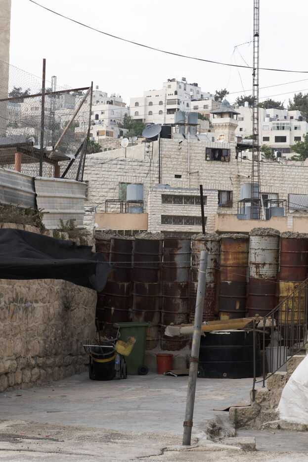 The Palestinian town of Hebron (or al-Khalil) in the West Bank: walls, barricades and barbed wire to divide the town between Palestinian territory and areas occupied by Israeli settlers. Palestine, Hebron, June 2, 2019.
