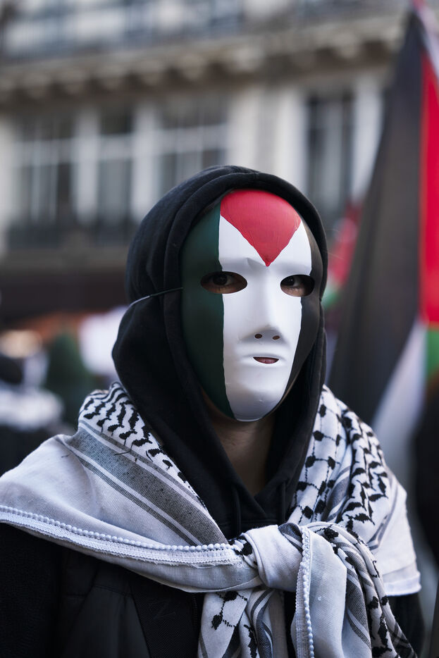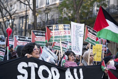 Authorized demonstration in support of Palestinian resistance from Place de la République, Paris, following recent clashes between Israel and Hamas. Gaza City has been repeatedly bombed and many Palestinians have been killed. December 17, 2023, Paris.