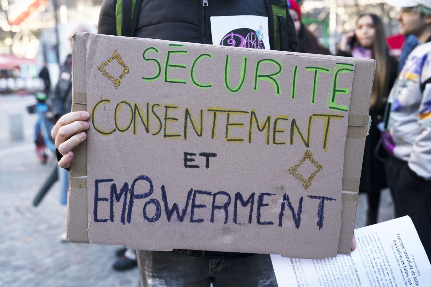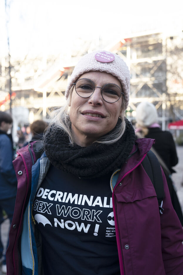 Rassemblement pour la Journée mondiale de lutte contre les violences faites aux travailleurs et travailleuses du sexe à Paris, Place Edmond Michelet. France, Paris, 2023-12-17.