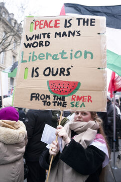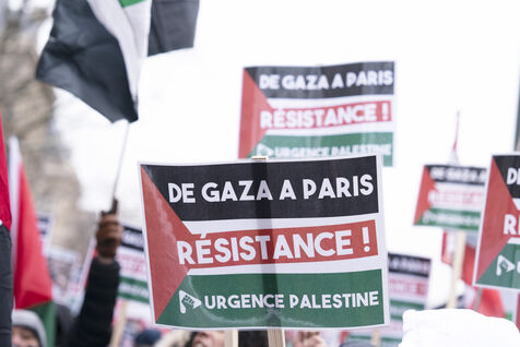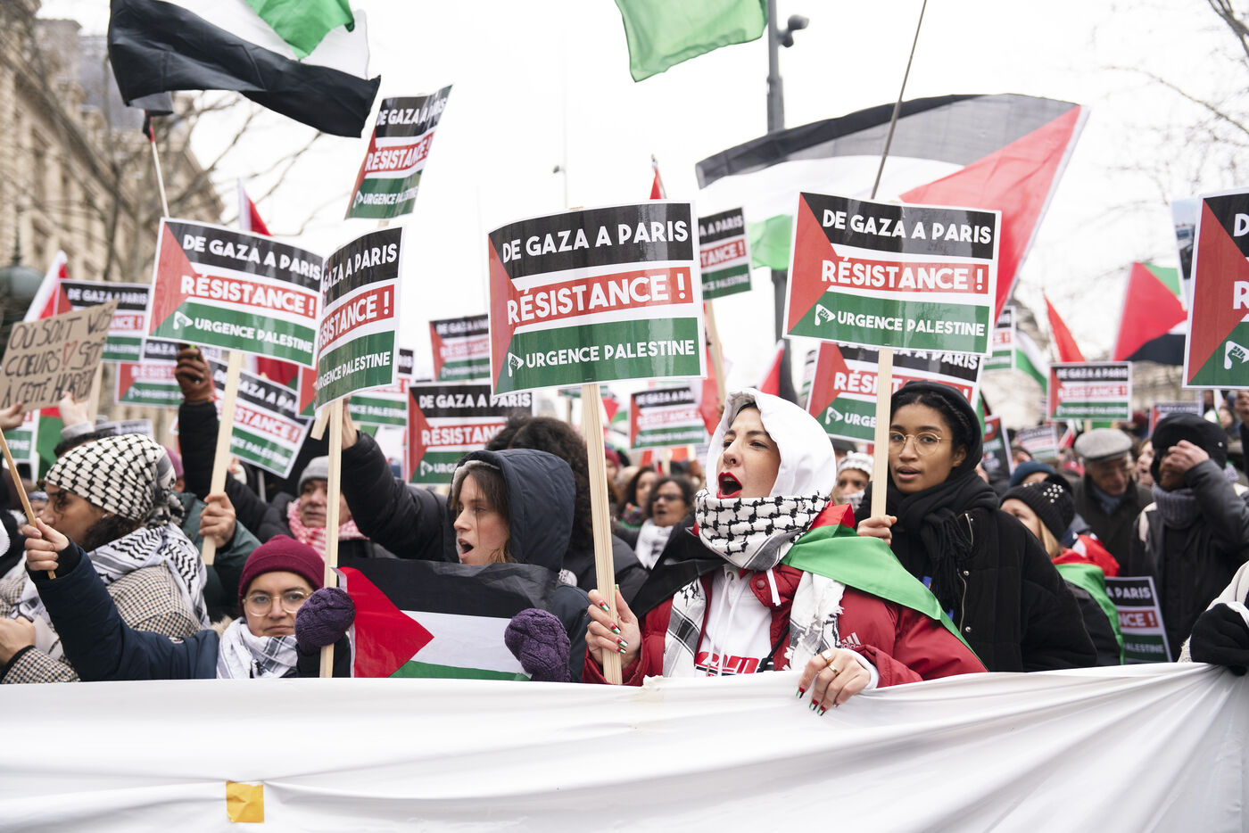 Authorized demonstration in support of Palestinian resistance from Place de la République, Paris, following recent clashes between Israel and Hamas. Gaza City has been repeatedly bombed and many Palestinians killed. January 13, 2024, Paris.