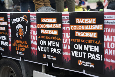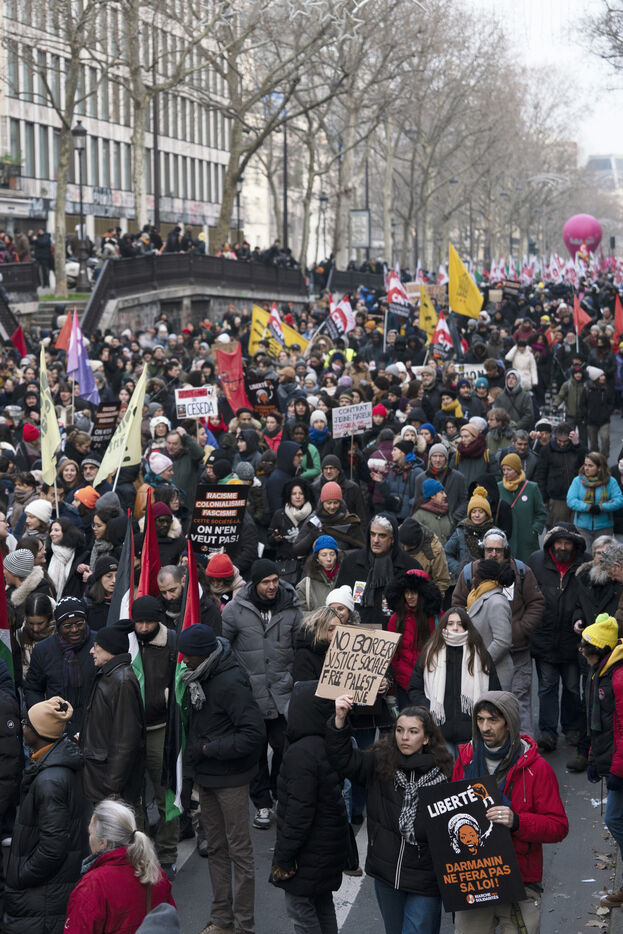 Demonstration against Darmanin's immigration law after its adoption last December, notably with the votes of the Rassemblement National. The bill provides for even greater repression and precariousness for undocumented and foreign workers. The demonstration, which left from Place de la République, called for the regularization of all undocumented workers in Paris on Sunday, January 14, 2024.