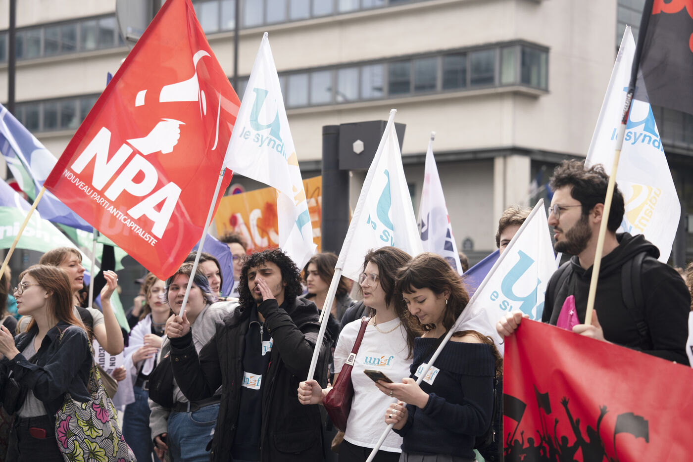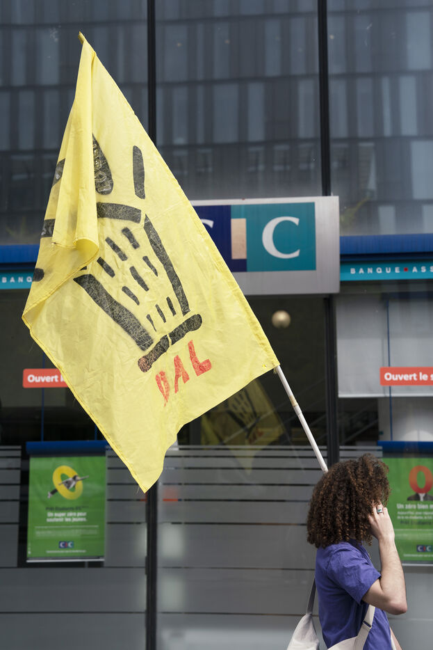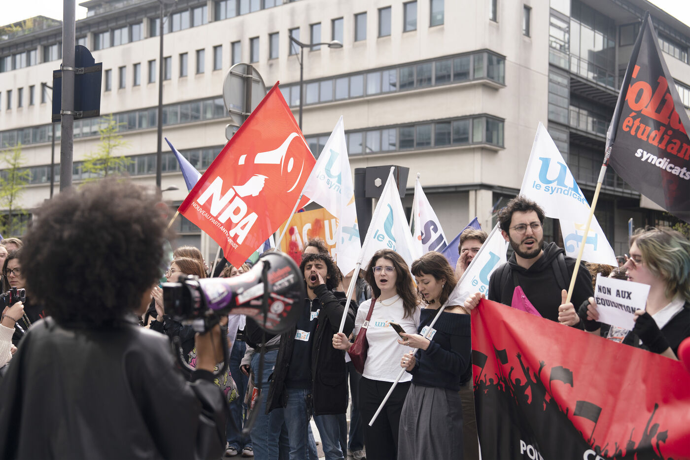 Demonstration against student evictions for the 2024 Olympics, in front of the Ministry of Sport and the Olympics, Saturday April 6, 2024. Many students have had their crous accommodation requisitioned, and even before the end of their academic year, for the Paris Olympics taking place this summer.