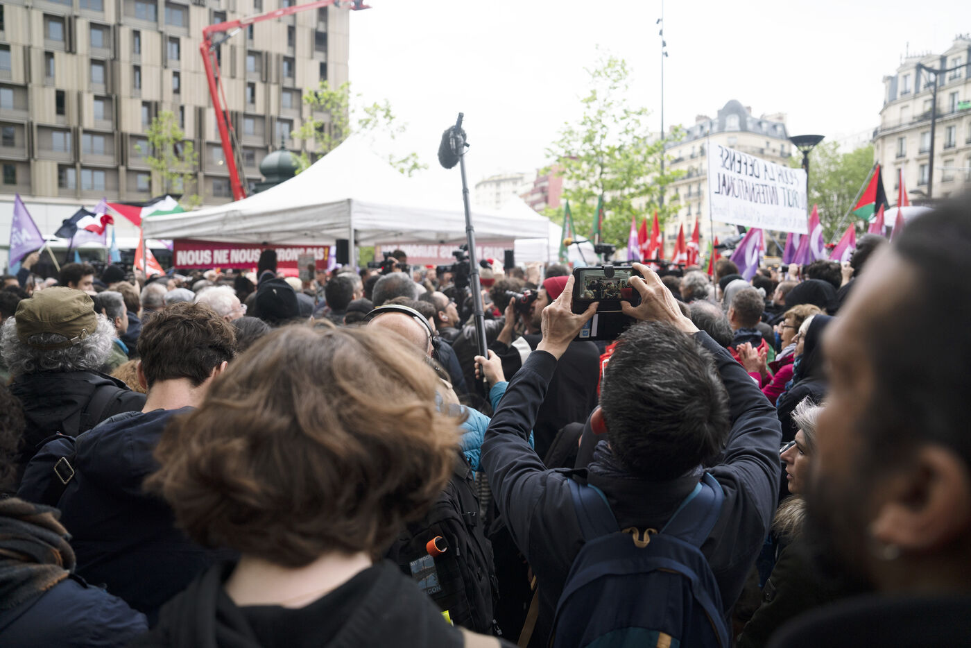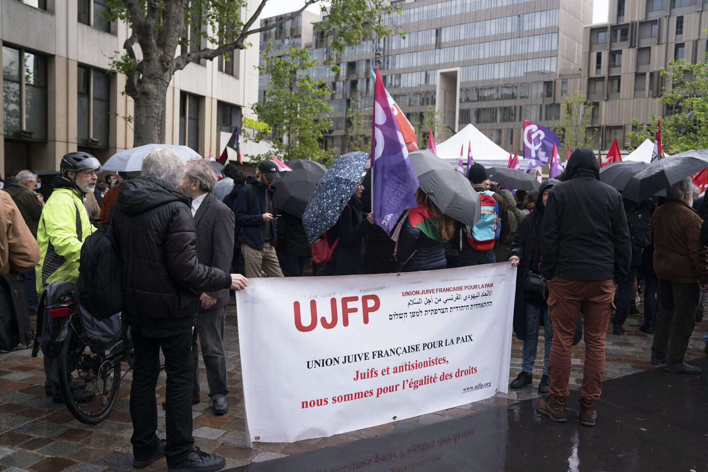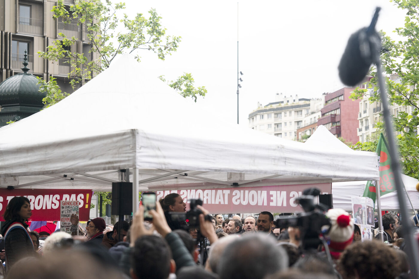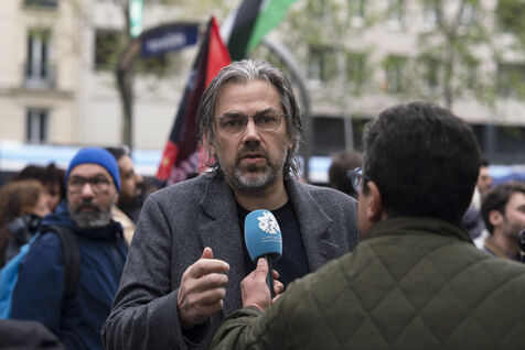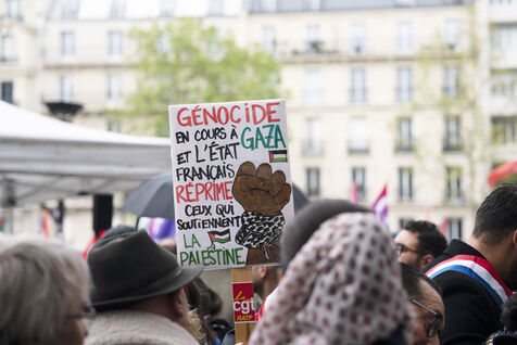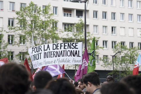 Gathering against the criminalization of voices for peace, in support of Mathilde Panot and Rima Hassan summoned by the police for apologie for terrorism this Tuesday, April 30, 2024, in Paris.
