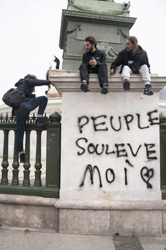 May 1, 2024 demonstration for workers and social justice in Paris. Demonstrators denounced the Paris 2024 Olympics in particular and demonstrated for social rights. There were a few clashes with the police. Between Place de la République and Nation, May 1, 2024, Paris.