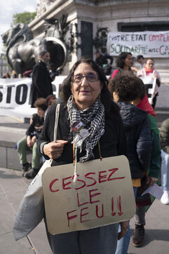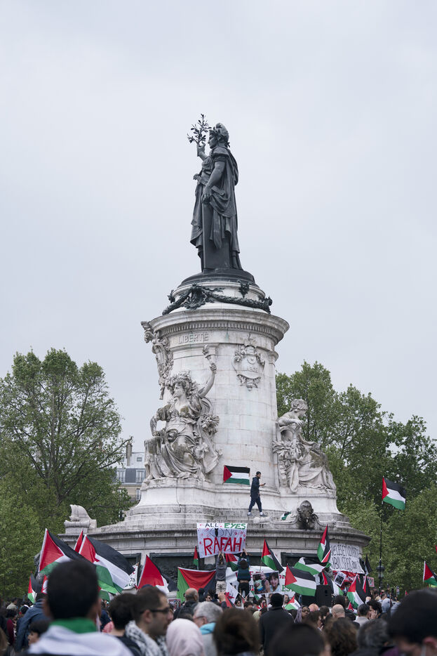 Gathering to denounce the massacre at Rafah and support the Palestinian people, Place de la République, Paris. May 7, 2024.