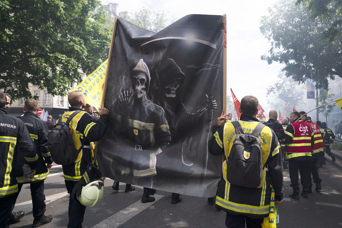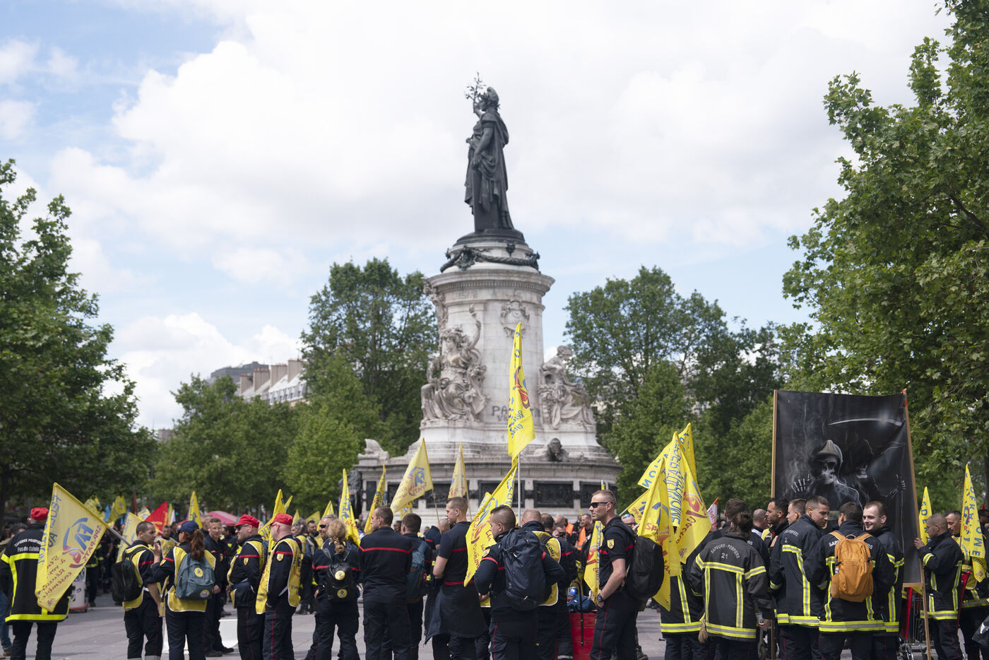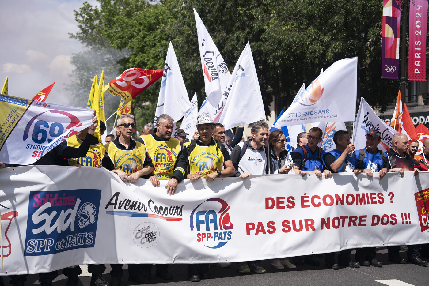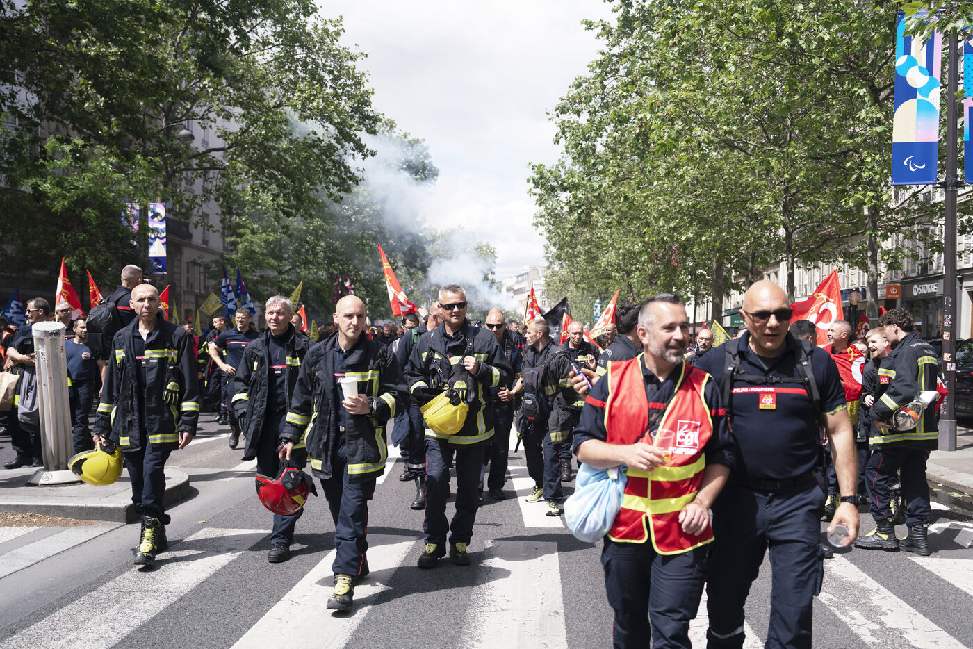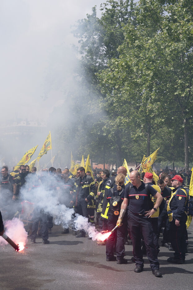 Firefighters' strike and demonstration between Place de la République and Nation, Paris, Thursday, May 16, 2024.