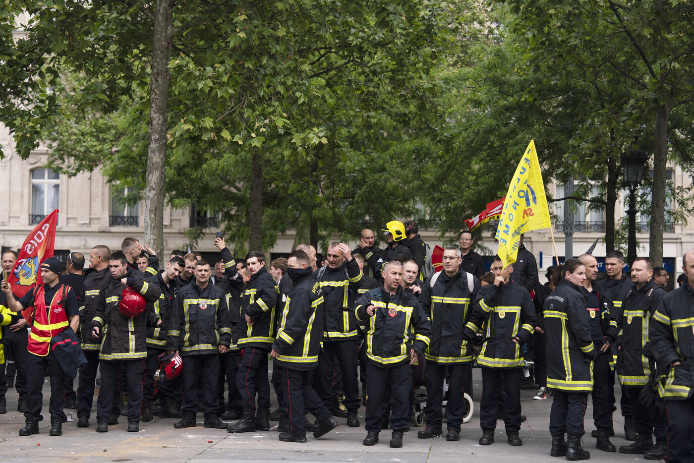 Grève des pompiers et manifestation entre Place de la République et Nation, à Paris, le jeudi 16 mai 2024.